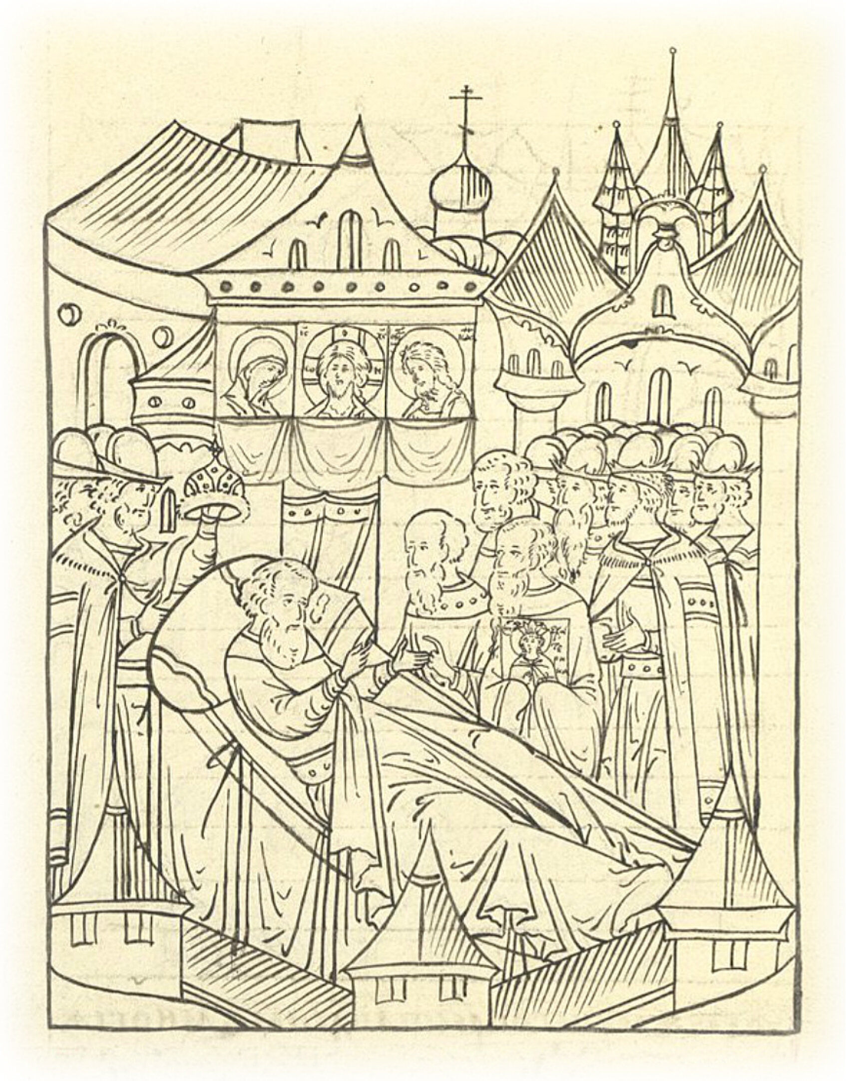Великий князь Василий Иванович прикладывается к мощам великомученницы Екатерины.