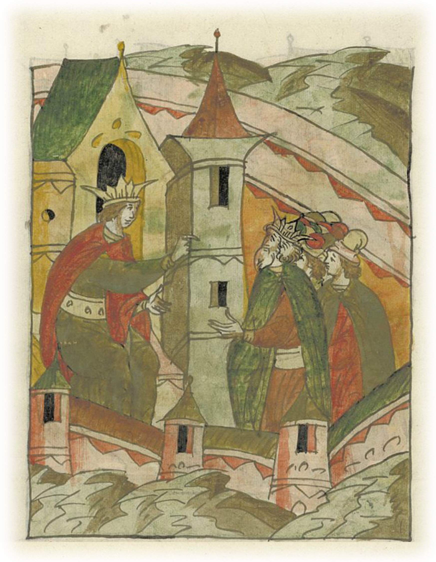 Ругодивские посадники Яким и Захар приезжают в Москву. Воеводы царя Ивана Васильевича Алексей Адашев и Иван Михайлов сообщают им, что государь пожалует их, если сдадут его воеводам помимо Ругодива Вышгород.