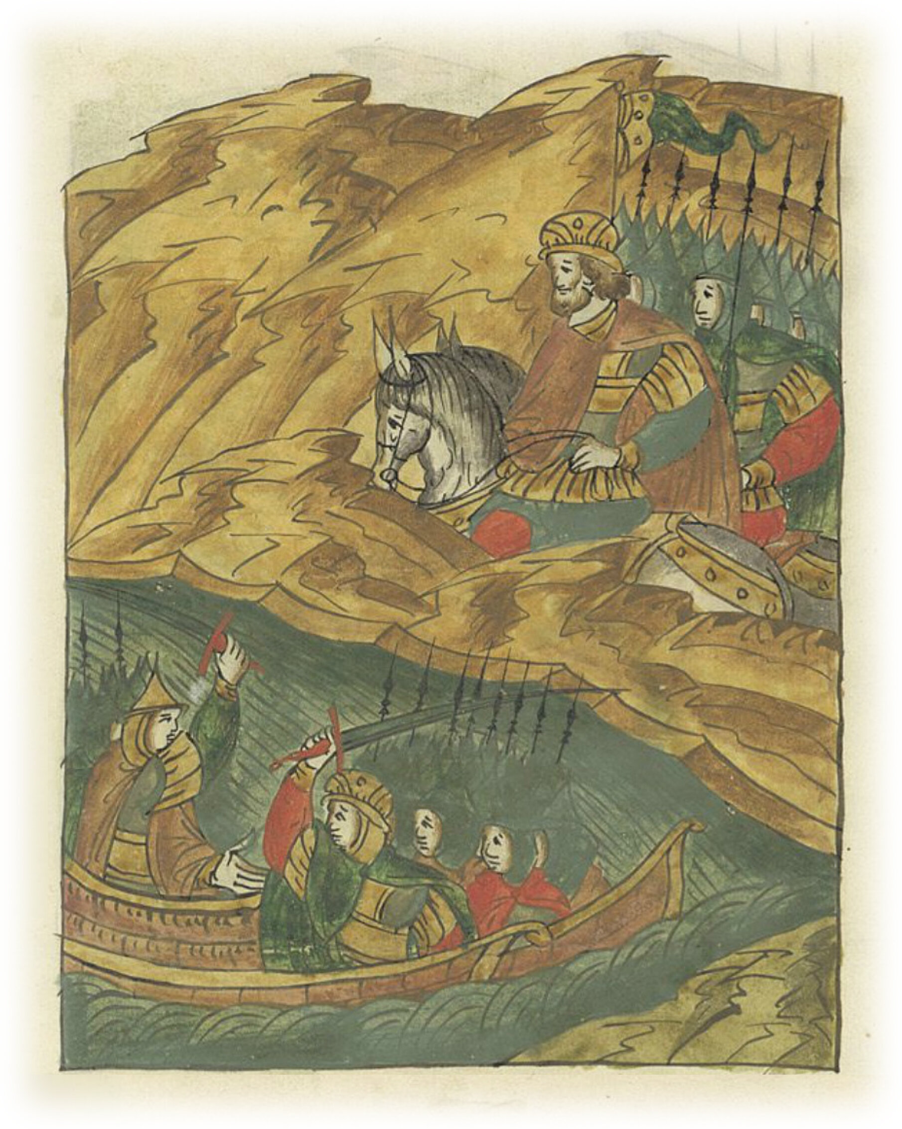 Воеводы царя Ивана Васильевича, разделившись, идут в погоню за царем Емгурчеем.