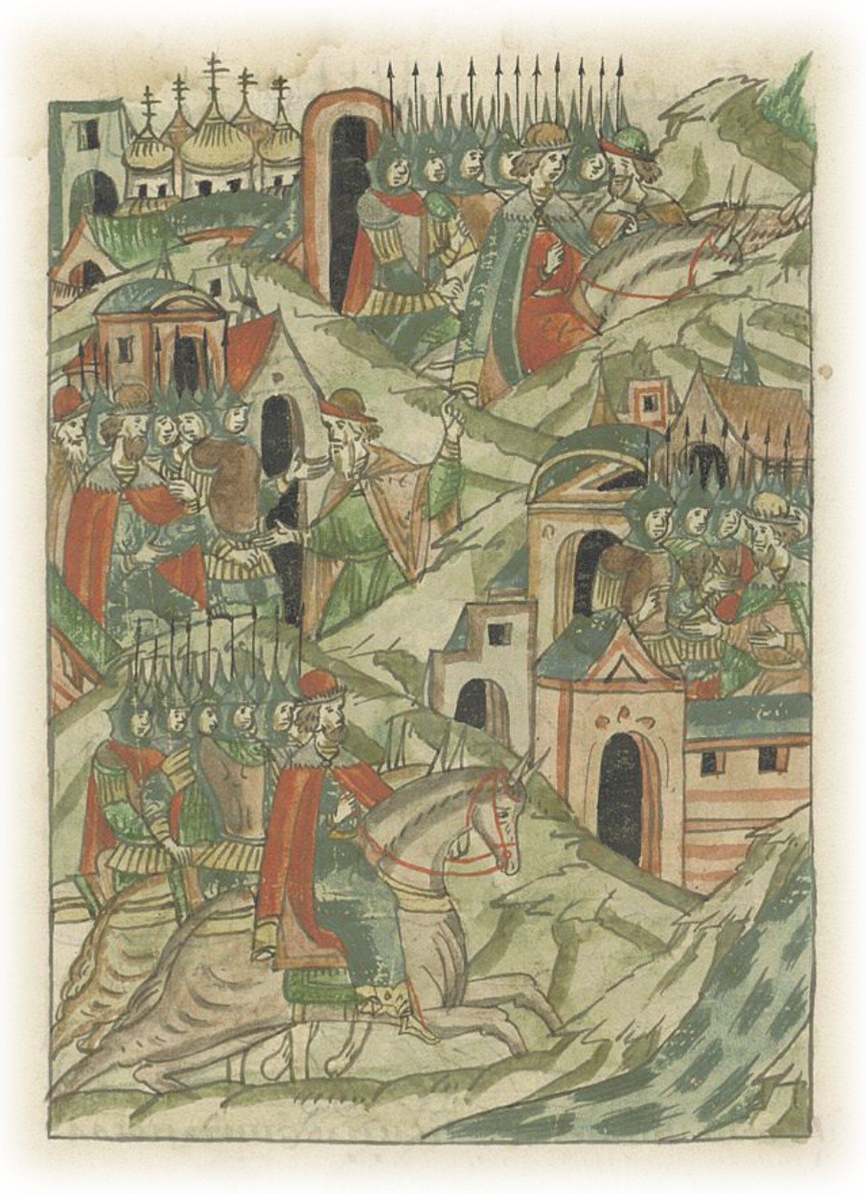 И пошел князь великий к Костроме. Князь же Юрий Дмитриевич, услышав, что идет на него князь великий со всеми силами и с братьями его Дмитриевичами, и побежал в Новгород Нижний, и засел там со всеми людьми своими.