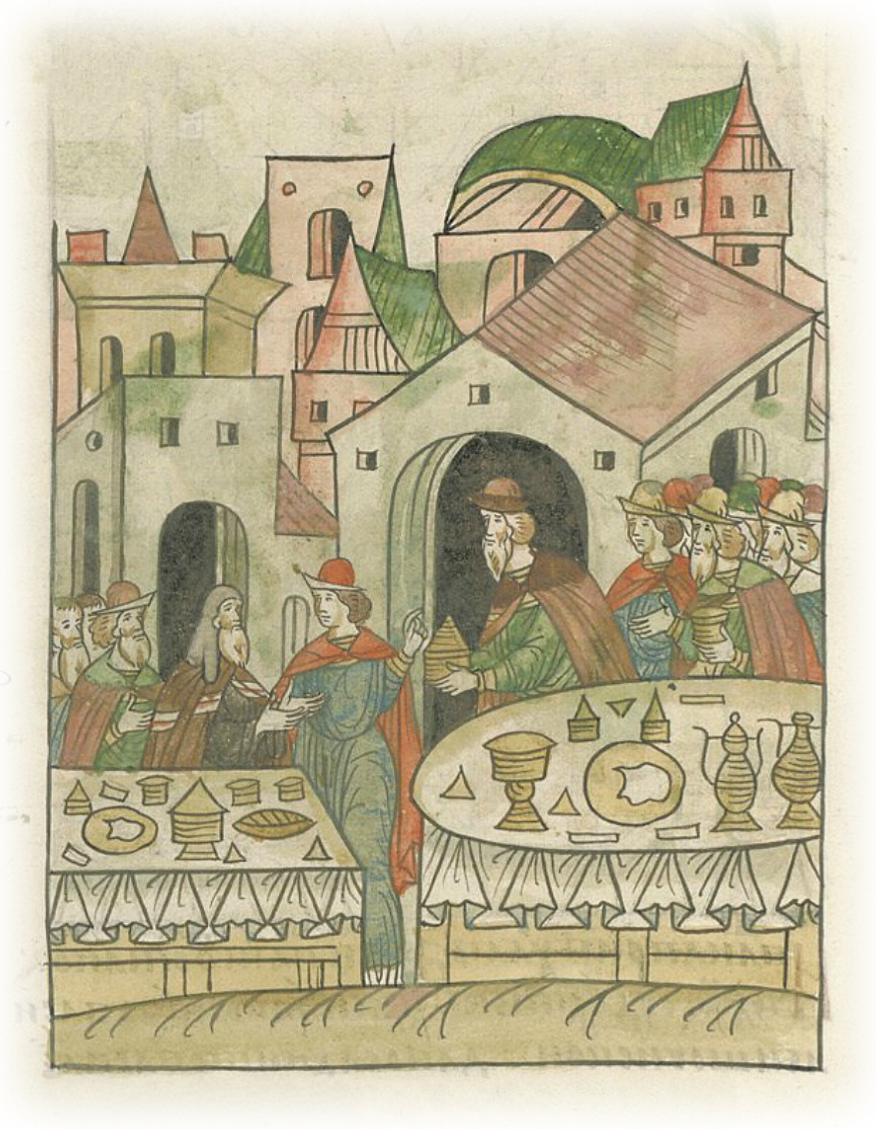 И князь великий звал их к себе есть. И ели, и пили у него, и одарил князь великий владыку и князя Василия.