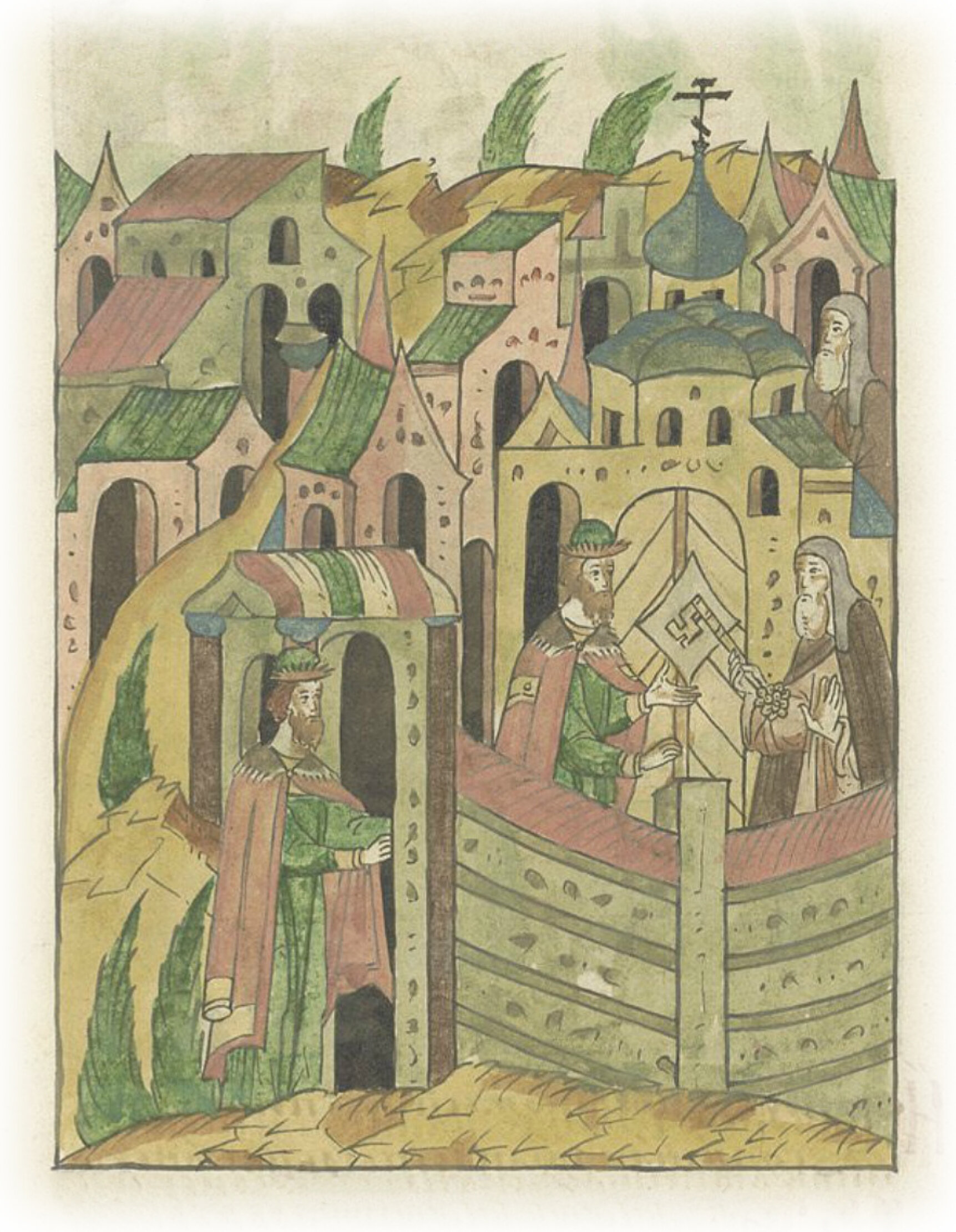 Ругодивские посадники Яким и Захар приезжают в Москву. Воеводы царя Ивана Васильевича Алексей Адашев и Иван Михайлов сообщают им, что государь пожалует их, если сдадут его воеводам помимо Ругодива Вышгород.