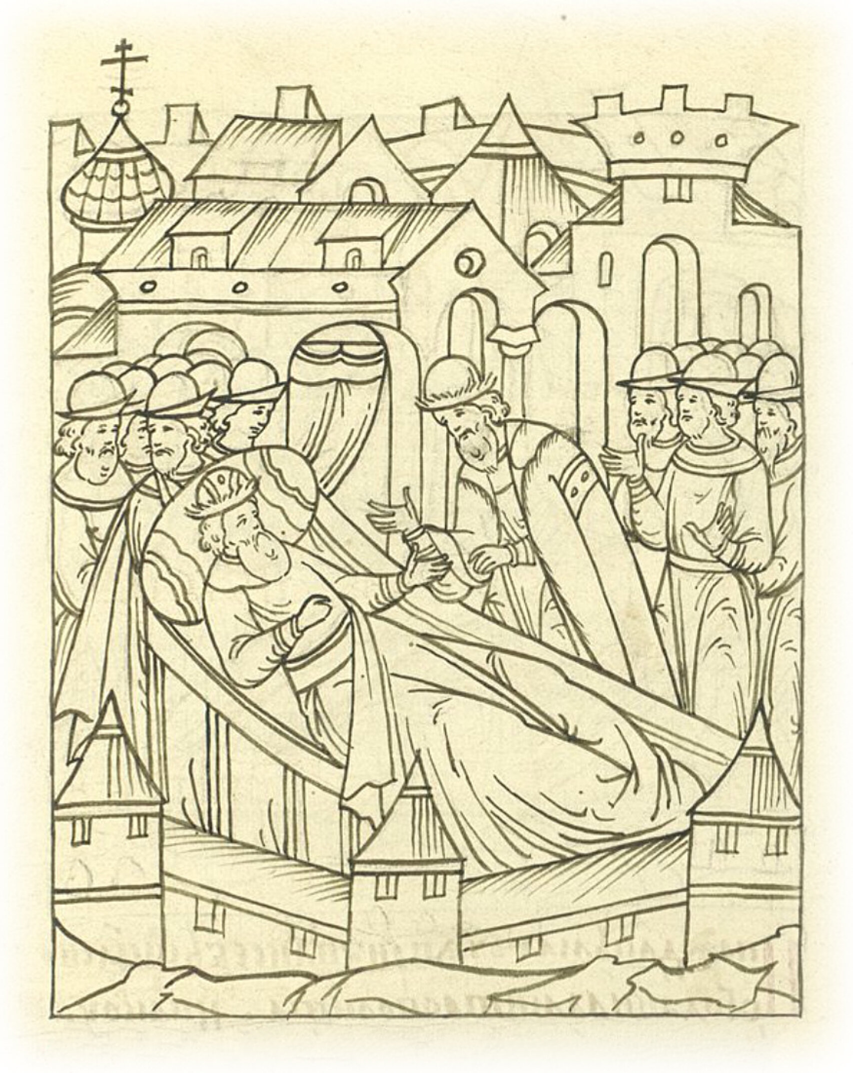 И немного подождав, призвал к себе брата своего князя Юрия Ивановича и сказал ему: «Помнишь ли, брат, когда отца нашего великого князя Ивана не стало на следующий день после Дмитриева дня, в понедельник, потому что немощь его томила день и ночь? И мне, брат, также смертный час и кончина приближается».