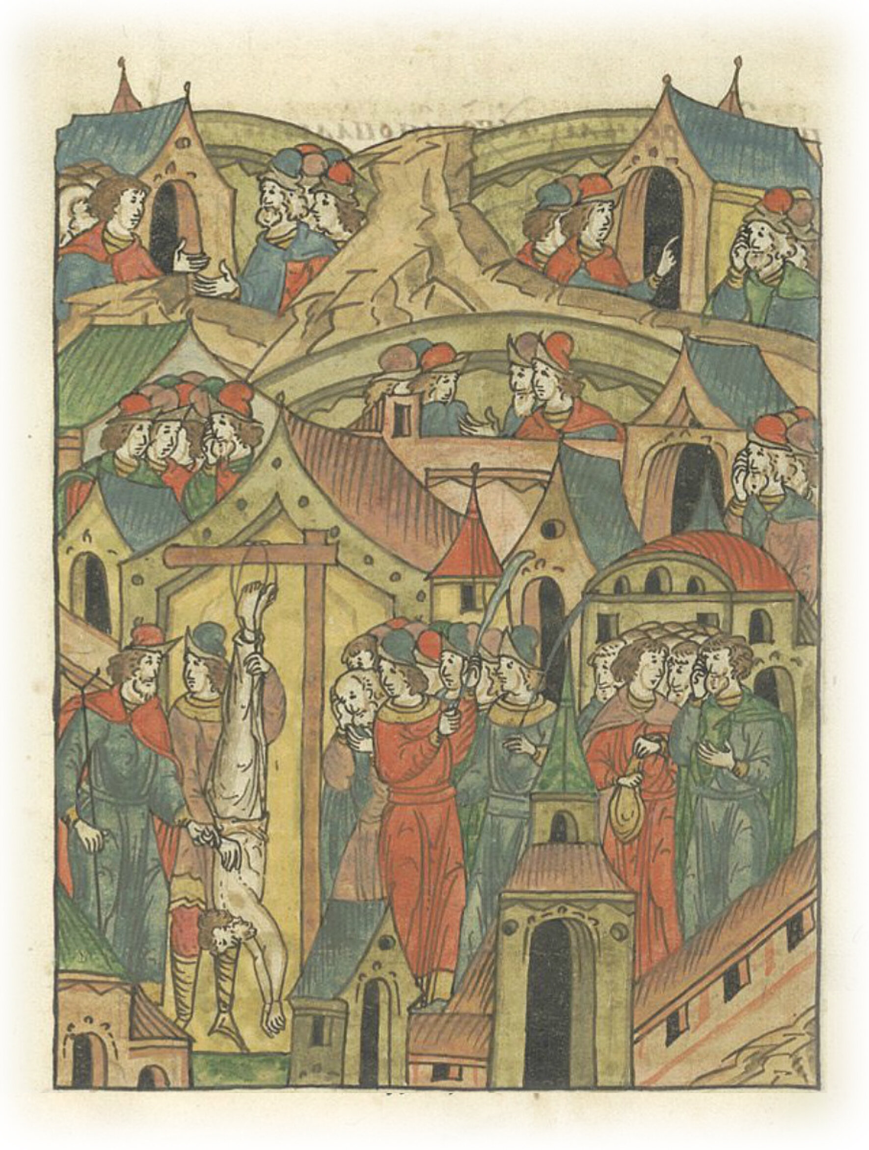 Ну, что тут еще скажешь? А еще так осмелели (москвичи, что самого) городского епарха, старейшего боярина ростовского по имени Аверкий, применив к нему насилие, повесили вниз головой, и так надругавшись, оставили едва живым. И напал страх великий на всех, слышащих и видящих это не только в городе Ростове, но и во всех пределах и волостях.