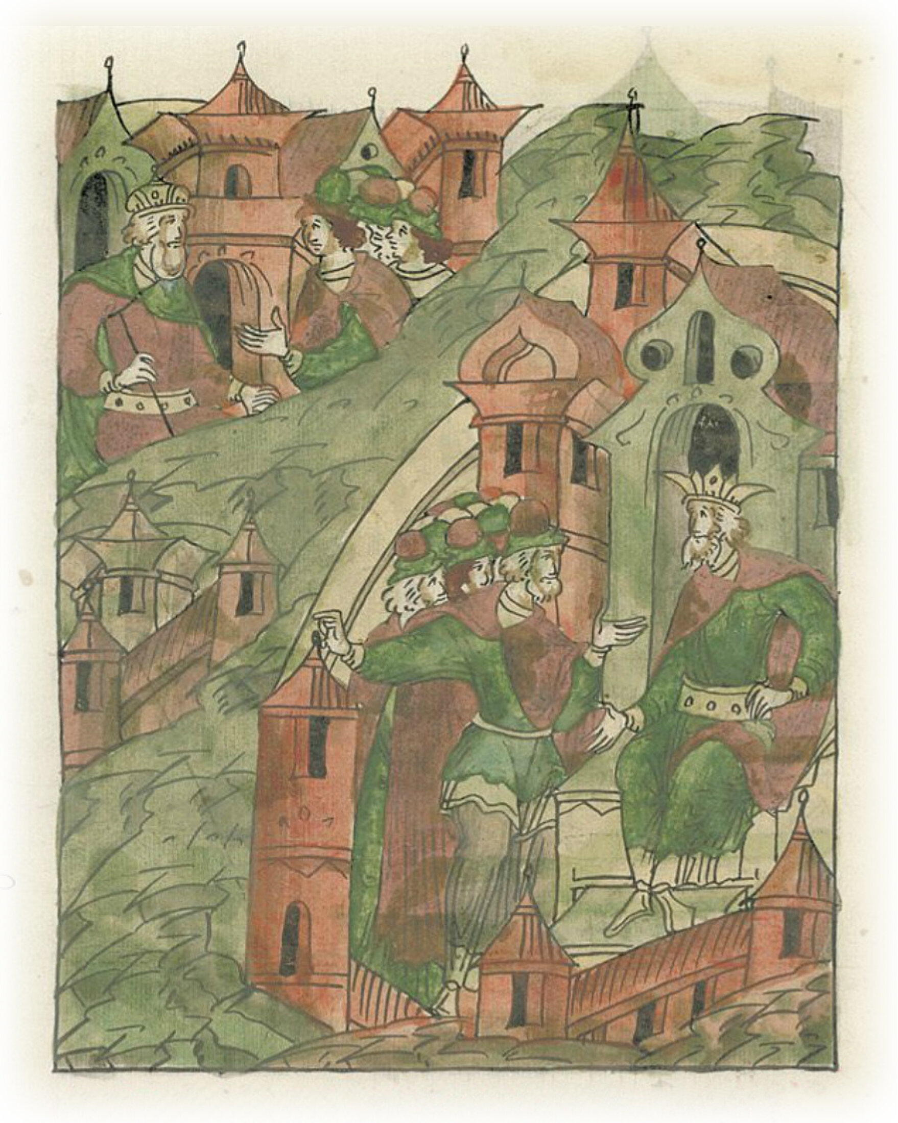 Ругодивские посадники Яким и Захар приезжают в Москву. Воеводы царя Ивана Васильевича Алексей Адашев и Иван Михайлов сообщают им, что государь пожалует их, если сдадут его воеводам помимо Ругодива Вышгород.