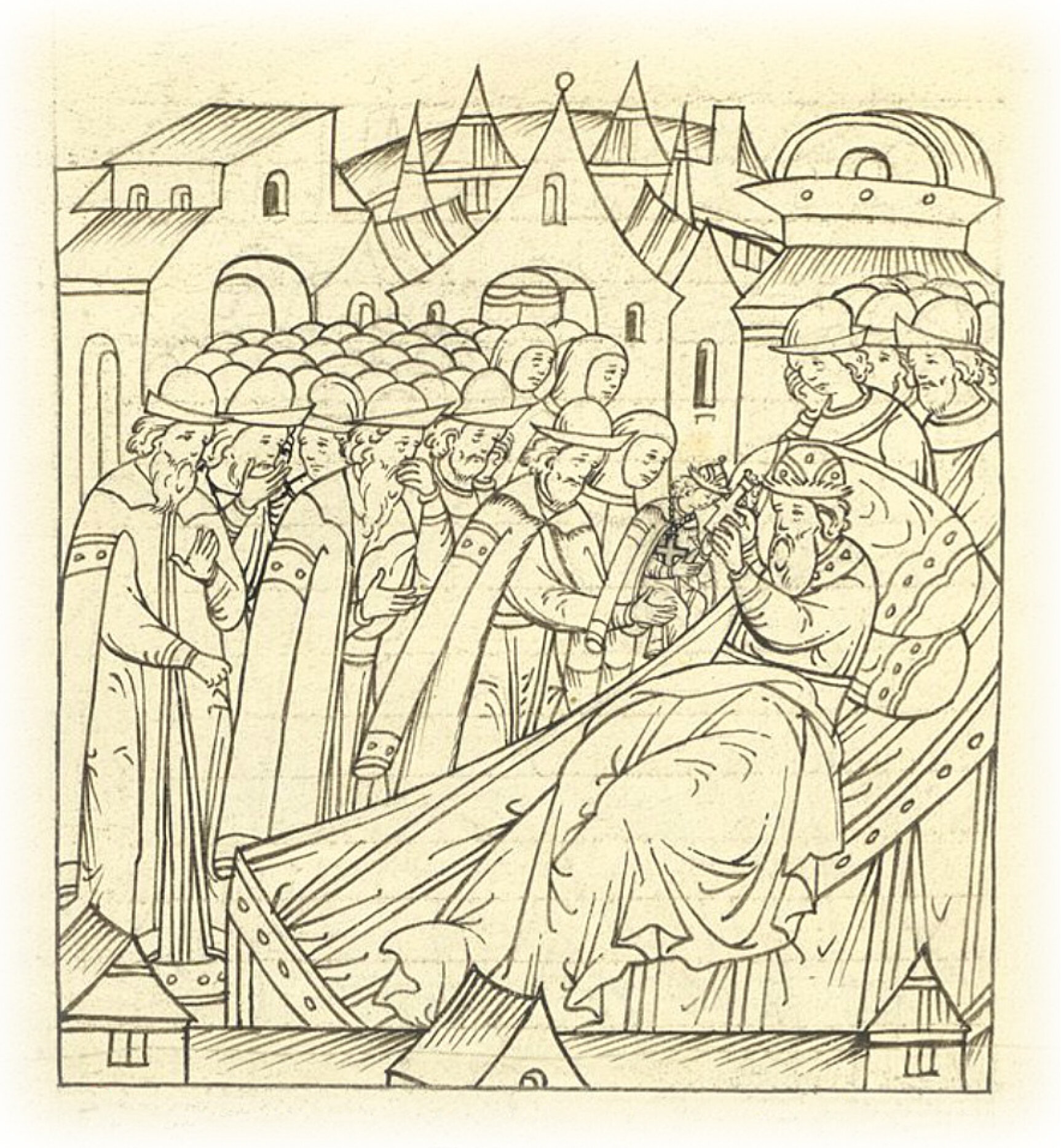 Великий князь Василий Иванович благословляет своего трехлетнего сына, великого князя Ивана.