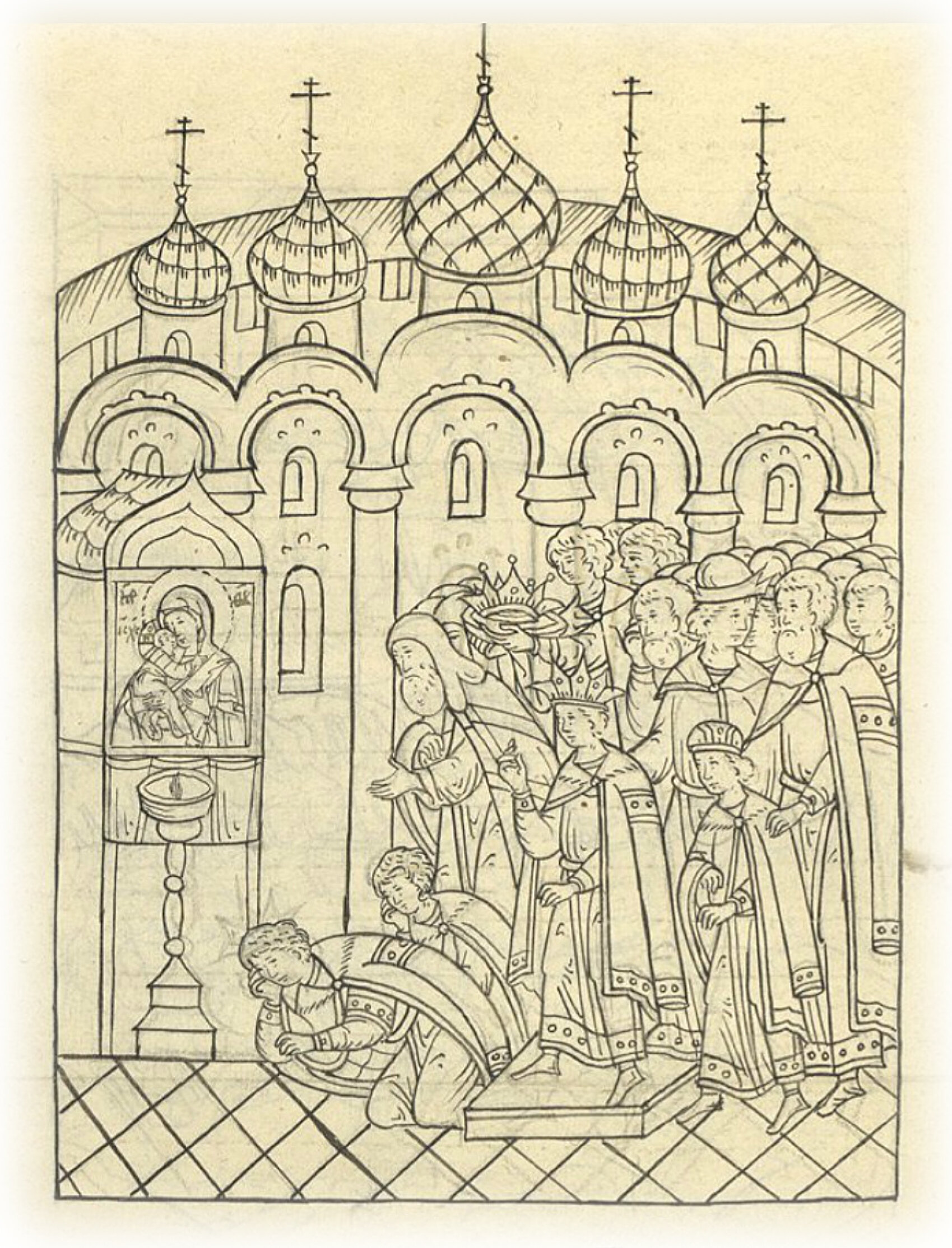 Великий князь Иван Васильевич молится в церкви Успения Пречистой Богородицы.