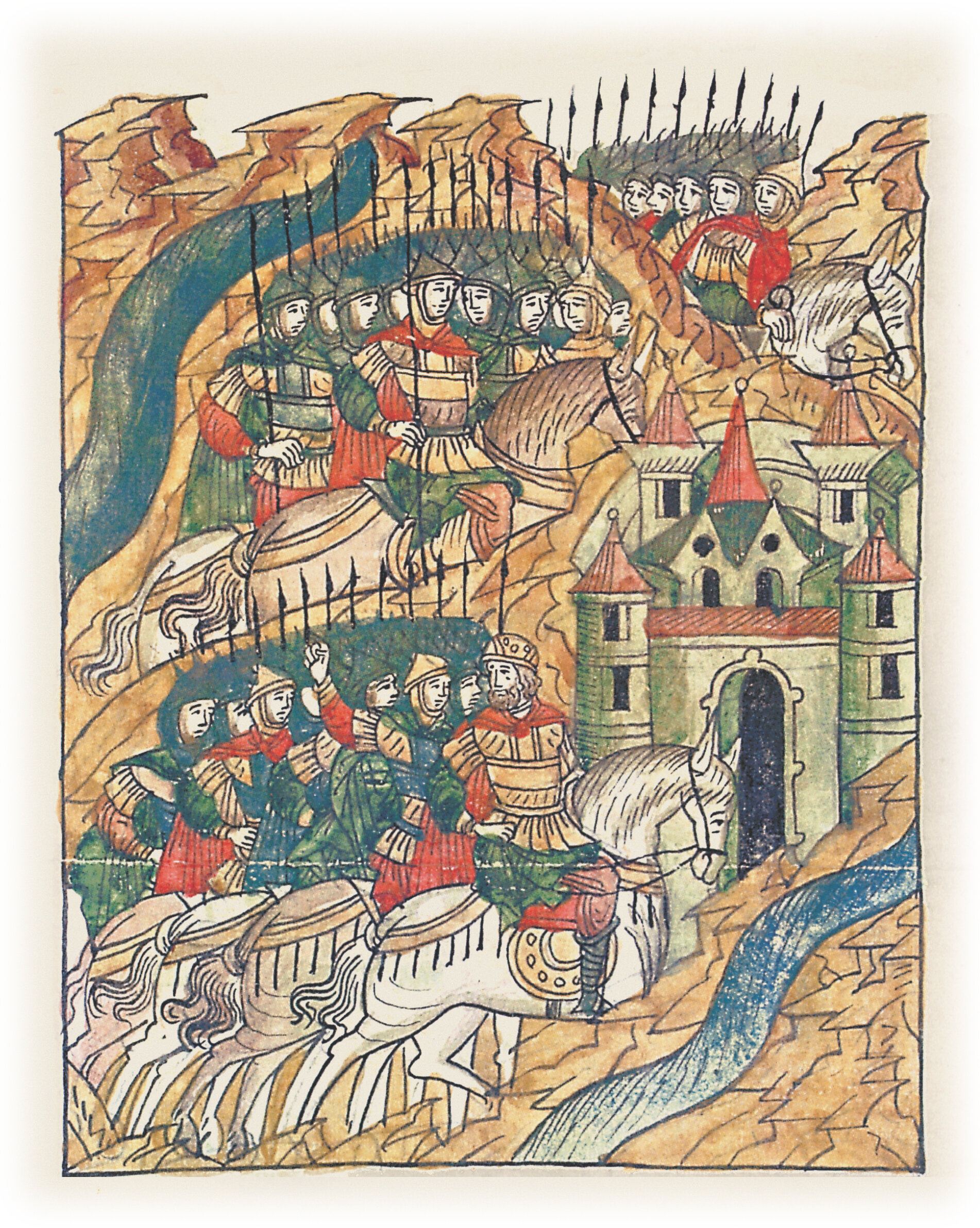 Языки говорят воеводам царя Ивана Васильевича, что магистр окопался большим рвом вокруг города Рындола, бьет из пушек и пищалей и приступает к Рындолу.