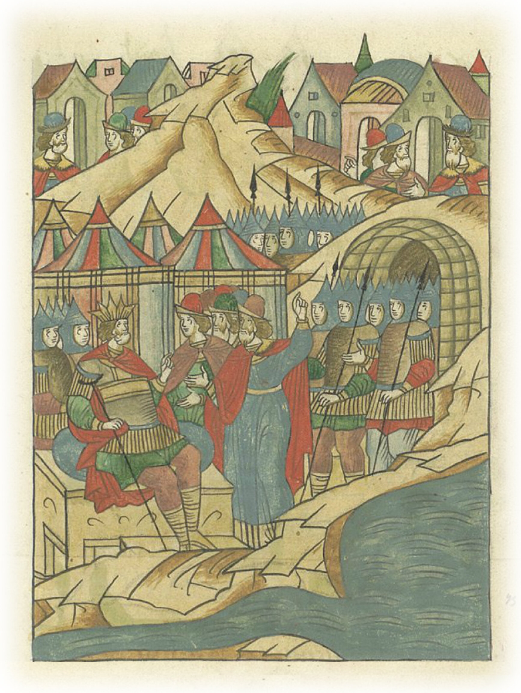 Языки говорят воеводам царя Ивана Васильевича, что магистр окопался большим рвом вокруг города Рындола, бьет из пушек и пищалей и приступает к Рындолу.