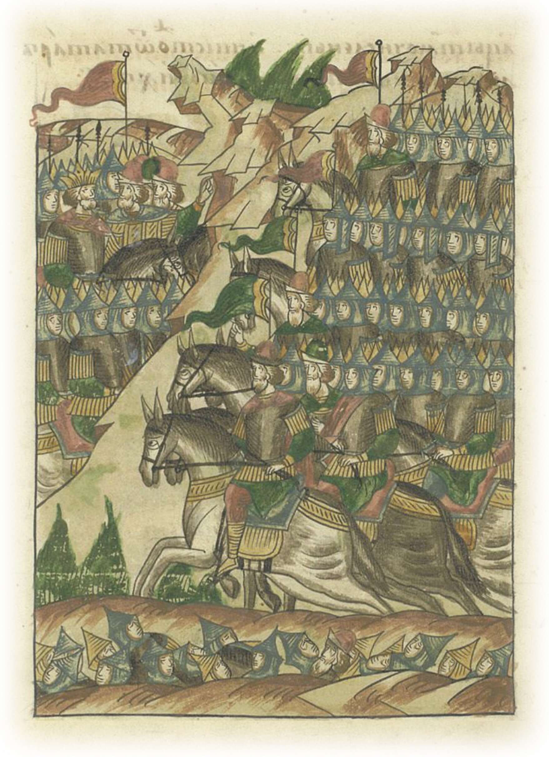 Воеводы царя Ивана Васильевича, разделившись, идут в погоню за царем Емгурчеем.
