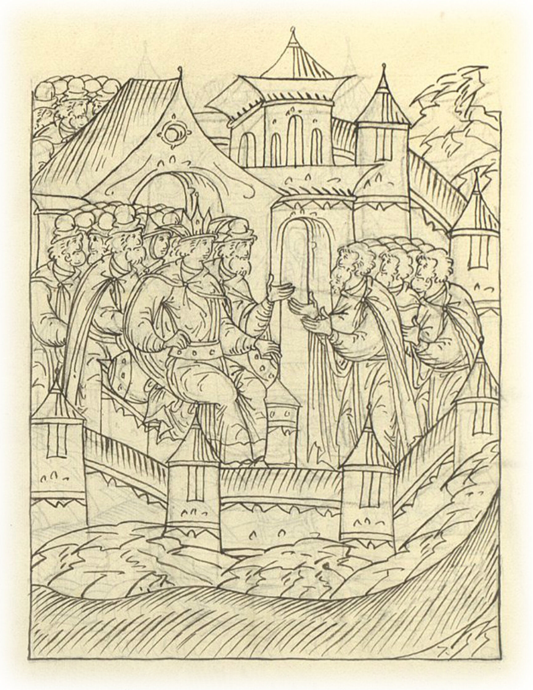 Чуваши, марийцы и черемисы приезжают к царю Ивану Васильевичу с просьбой пожаловать их и позволить жить у Свияжского города.