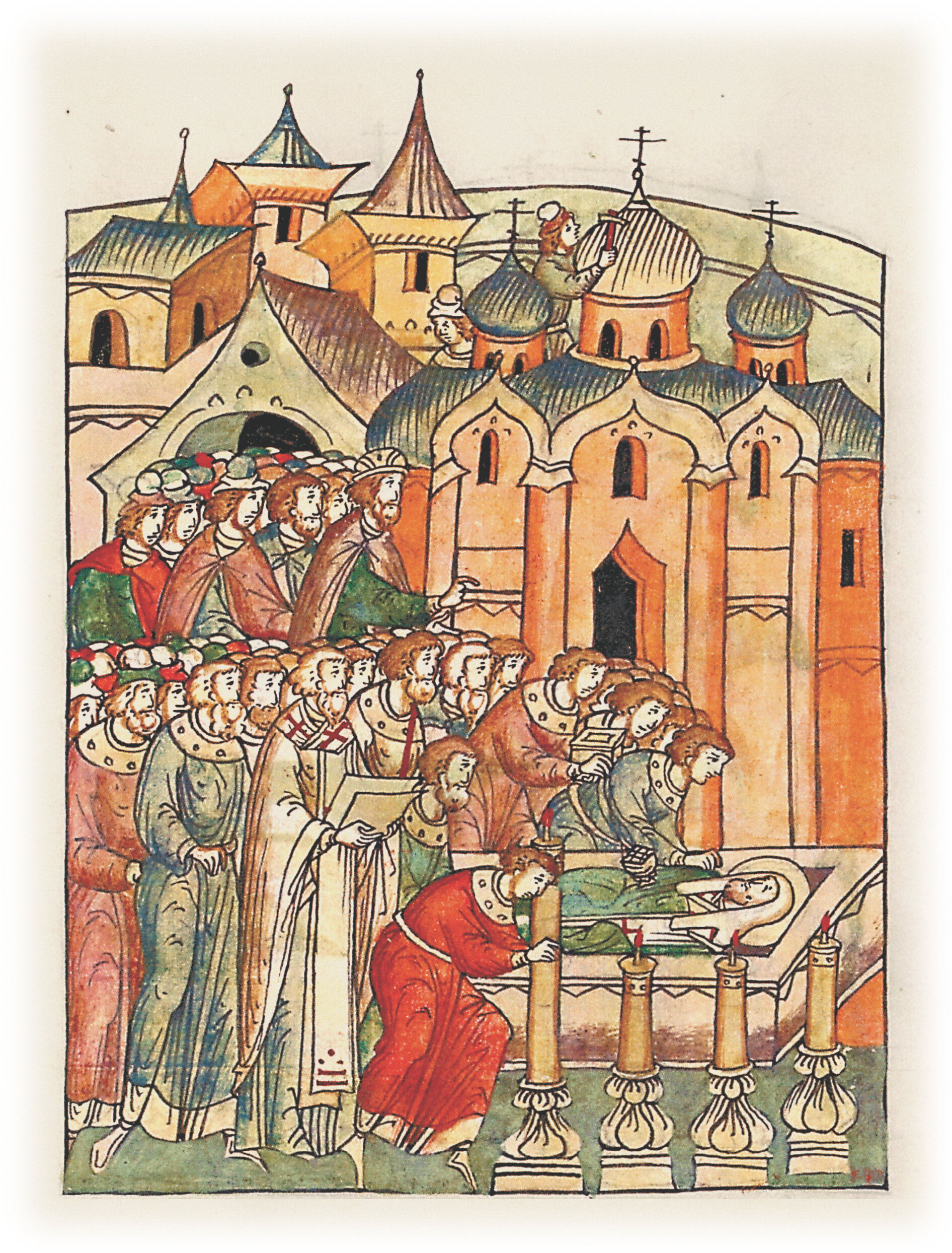 В построенной каменной церкви Успения Богородицы в Ростове ставят мощи блаженного Леонтия, Ростовского епископа.