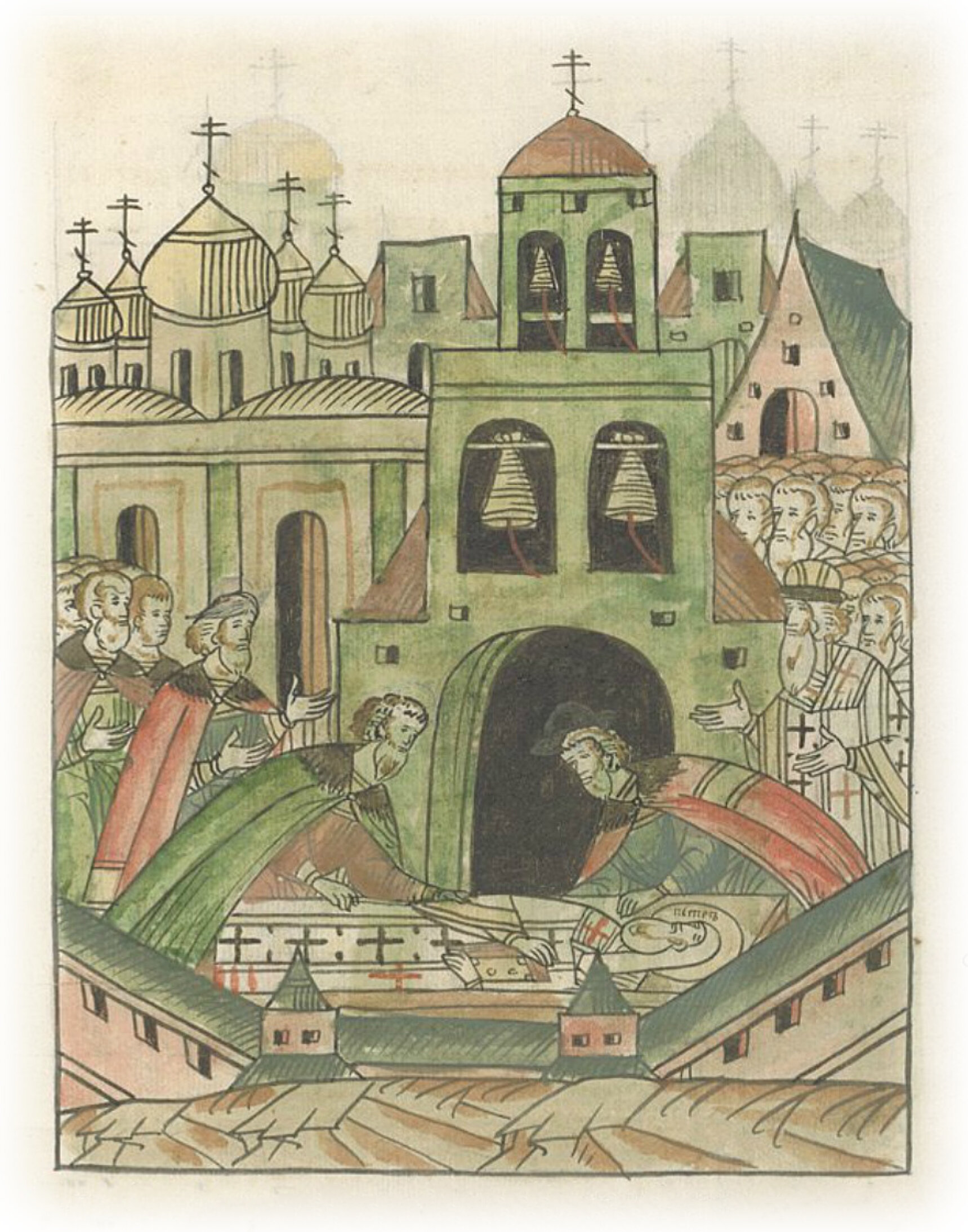 Перенесение мощей Петра митрополита и прочих святителей в новую церковь.