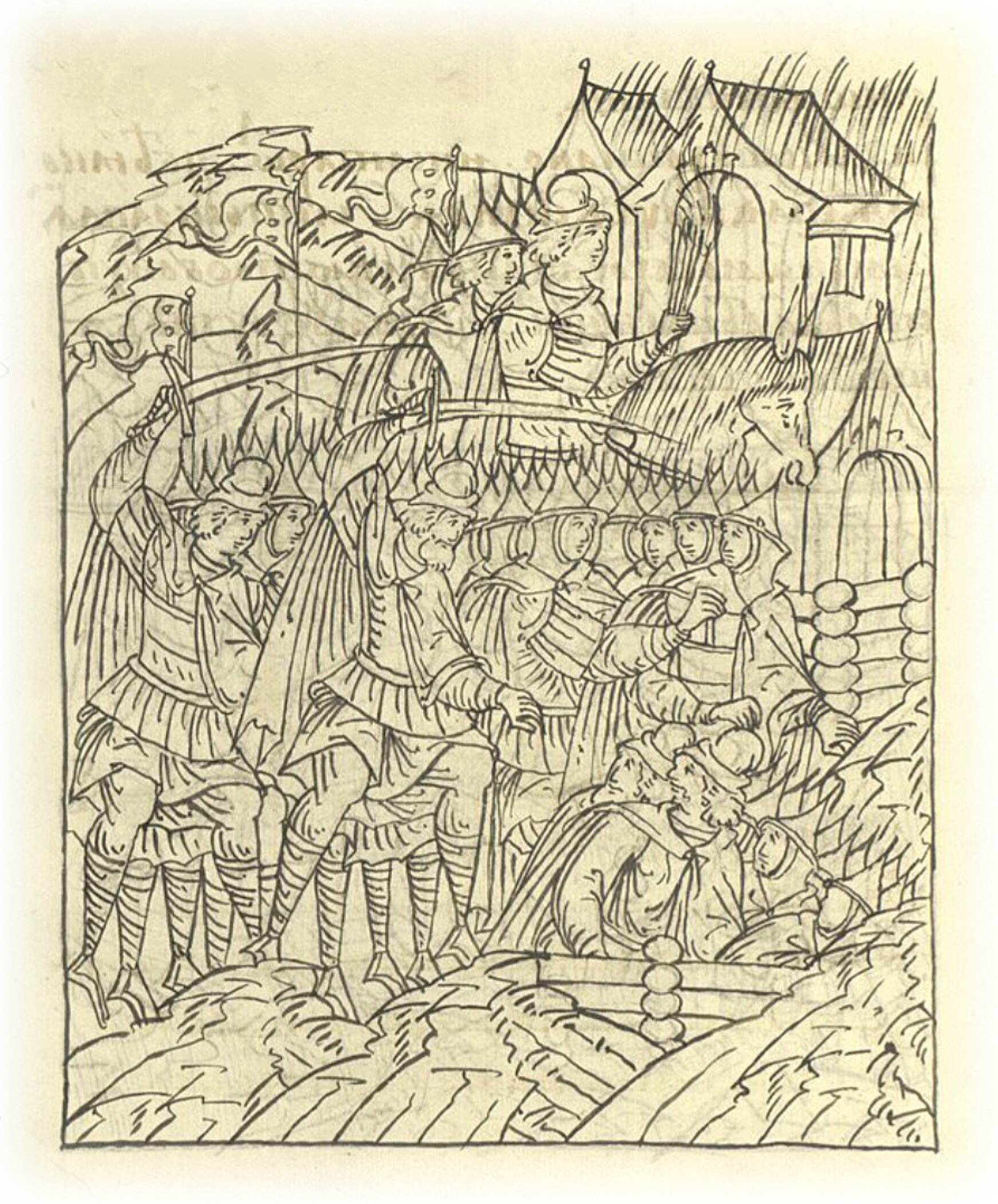 Языки говорят воеводам царя Ивана Васильевича, что магистр окопался большим рвом вокруг города Рындола, бьет из пушек и пищалей и приступает к Рындолу.