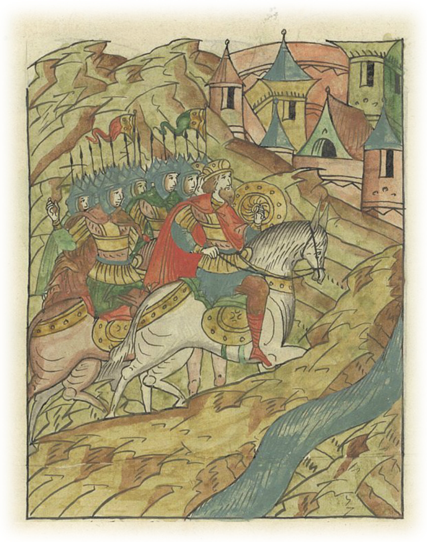 Языки говорят воеводам царя Ивана Васильевича, что магистр окопался большим рвом вокруг города Рындола, бьет из пушек и пищалей и приступает к Рындолу.