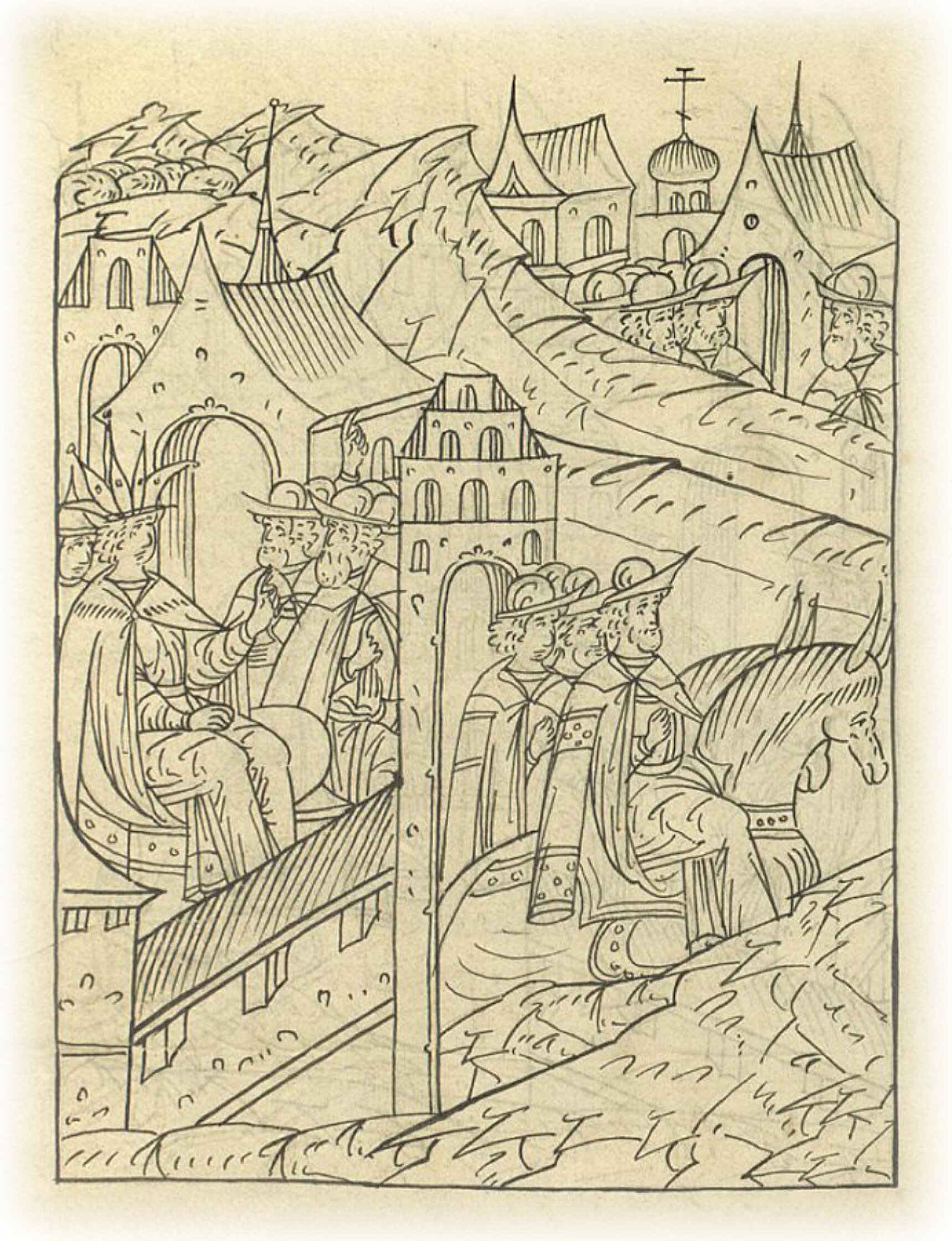 Ругодивские посадники Яким и Захар приезжают в Москву. Воеводы царя Ивана Васильевича Алексей Адашев и Иван Михайлов сообщают им, что государь пожалует их, если сдадут его воеводам помимо Ругодива Вышгород.