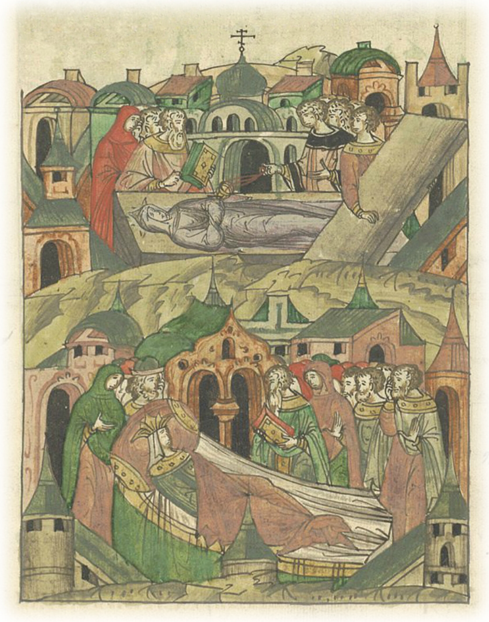 Кончина княгини Ивана Всеволодовича Тверского и ее похороны в церкви святого Спаса в Твери.