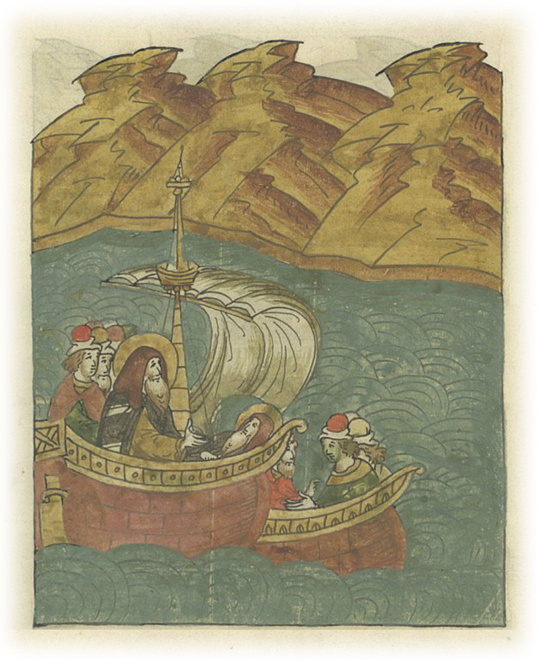 И когда плыл святой назад, из-за многих трудов охватила его сильная болезнь, и не нашлось места, где можно было бы сойти с корабля, и много дней пребывал без пищи, просили его принять пищу, святой же попросил свежевыловленную рыбу, но ему ответили, что нельзя ее достать.