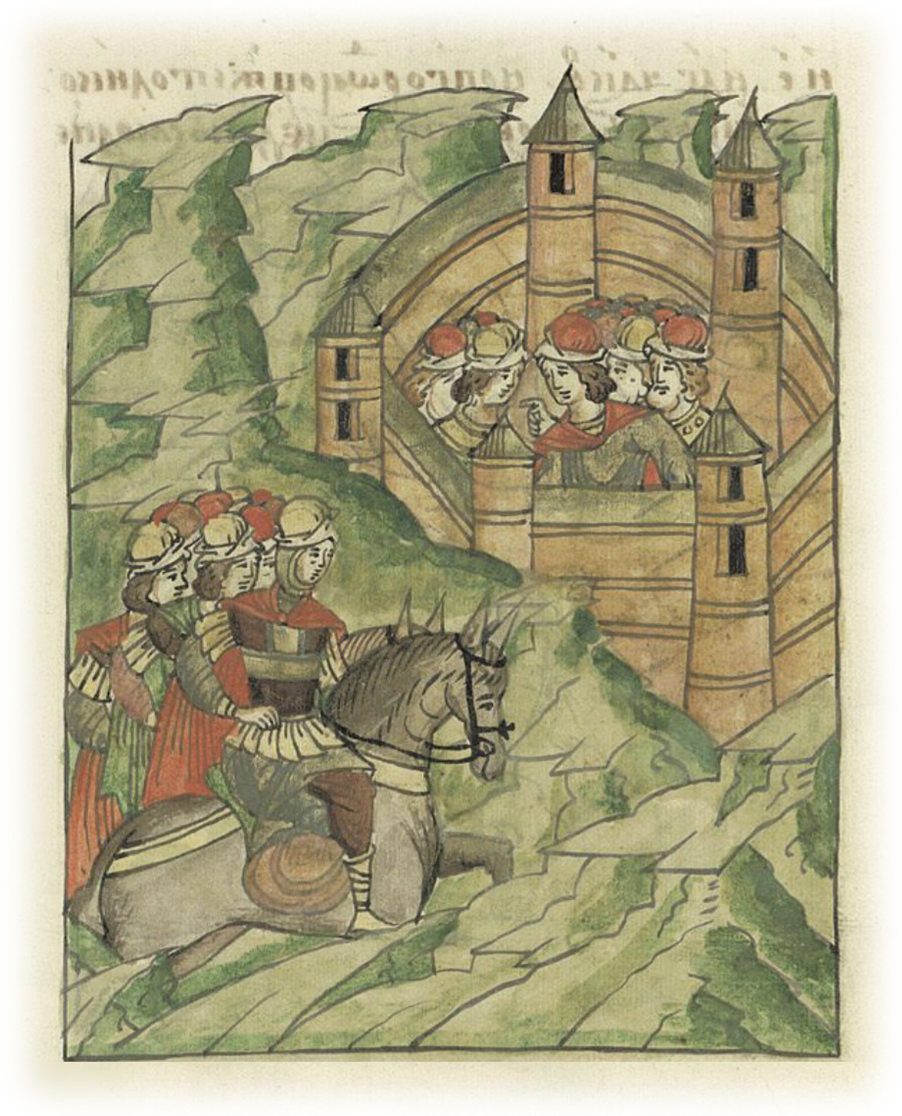 О побоище князя Ярослава Всеволодовича с князем Новгородским Мстиславом Мстиславичем у Липицы. Владимирцы, увидев бегущих к городу, радуются, думая, что это посланцы князя с известием о победе.