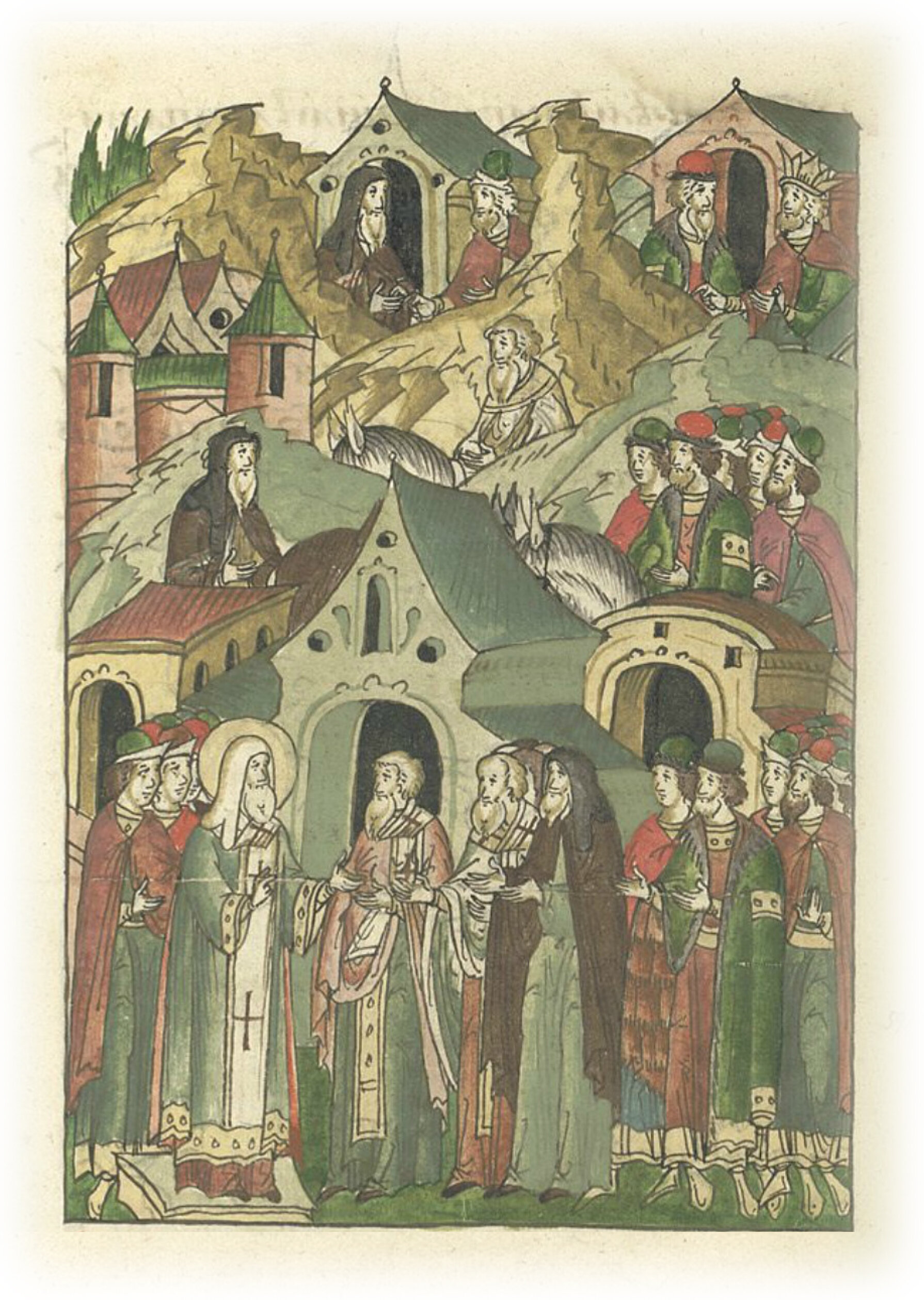 И когда пришел на Русь клирик, посланный патриархом, в Переяславле собрали собор. Пришел туда боголюбивый Ростовский епископ Симеон и преподобный Прохор, который тогда игуменом был. И призвали Андрея, епископа Тверского, который был источником всех тогдашних смут. Князь Михаил, сын Ярослава, сам был тогда в Орде, но пришли сыновья его Дмитрий и Александр. Пришло много и других князей и вельмож, а также и лучшие из священников, игуменов, иноков и множество пресвитеров.