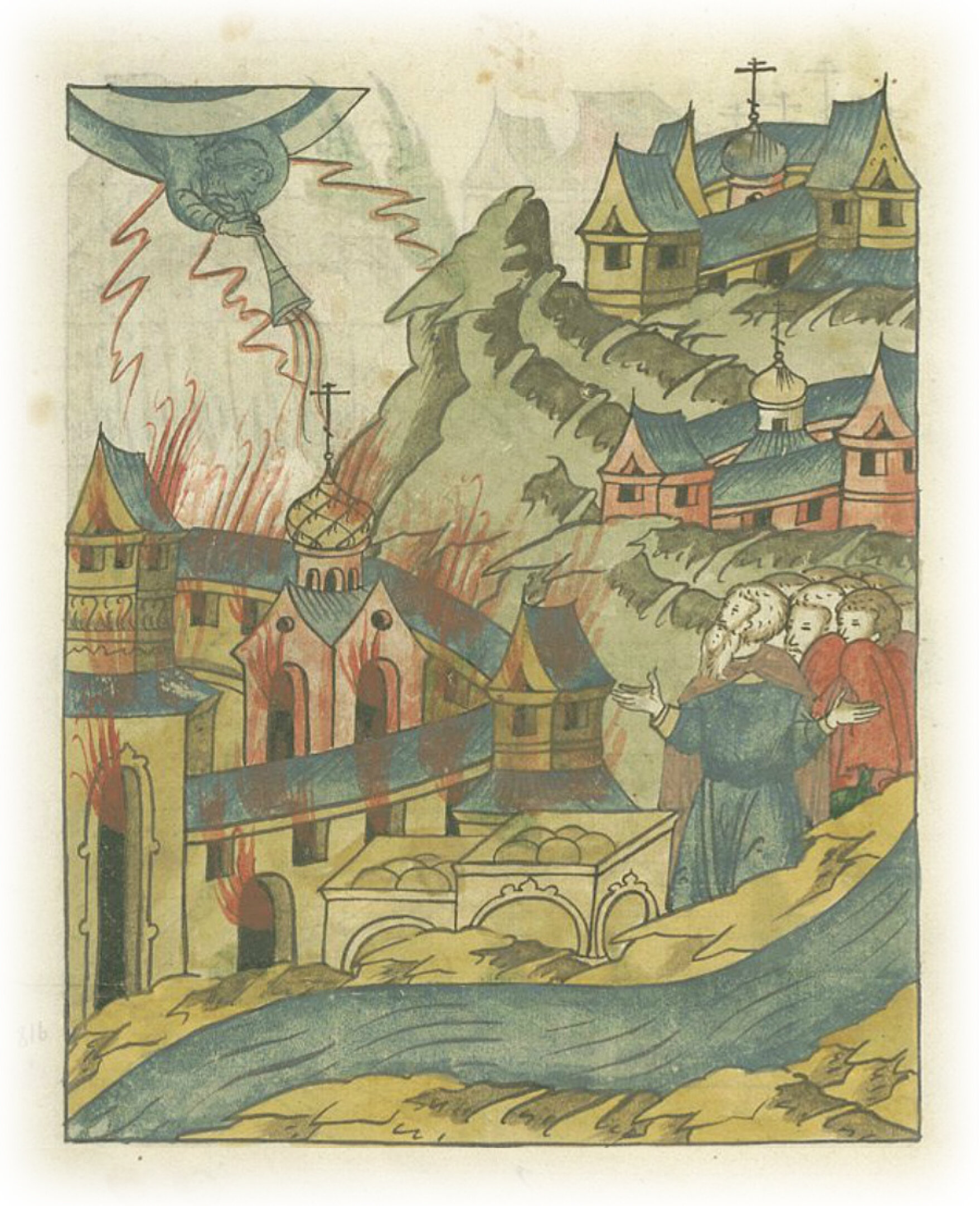 Город Старица сгорает в пожаре, начавшемся от грома.