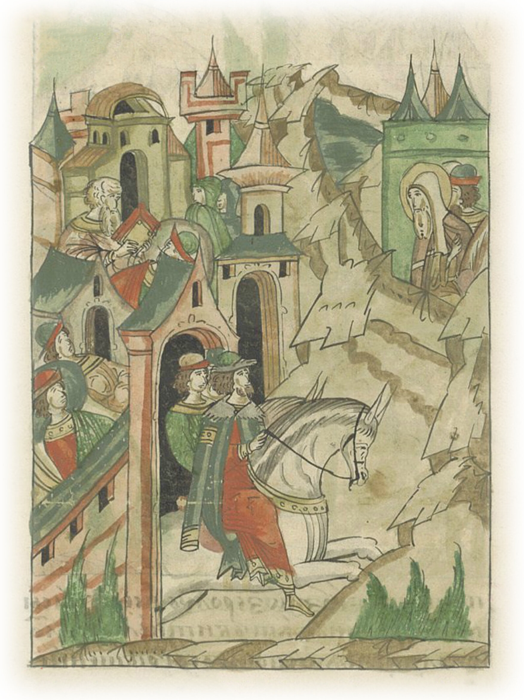 И в тот час мор великий напал на людей его во всем городе его, и князь Юрий Дмитриевич, услышав и увидев это, очень испугался, и поскорее сел на коня, и погнался за ним спешно.