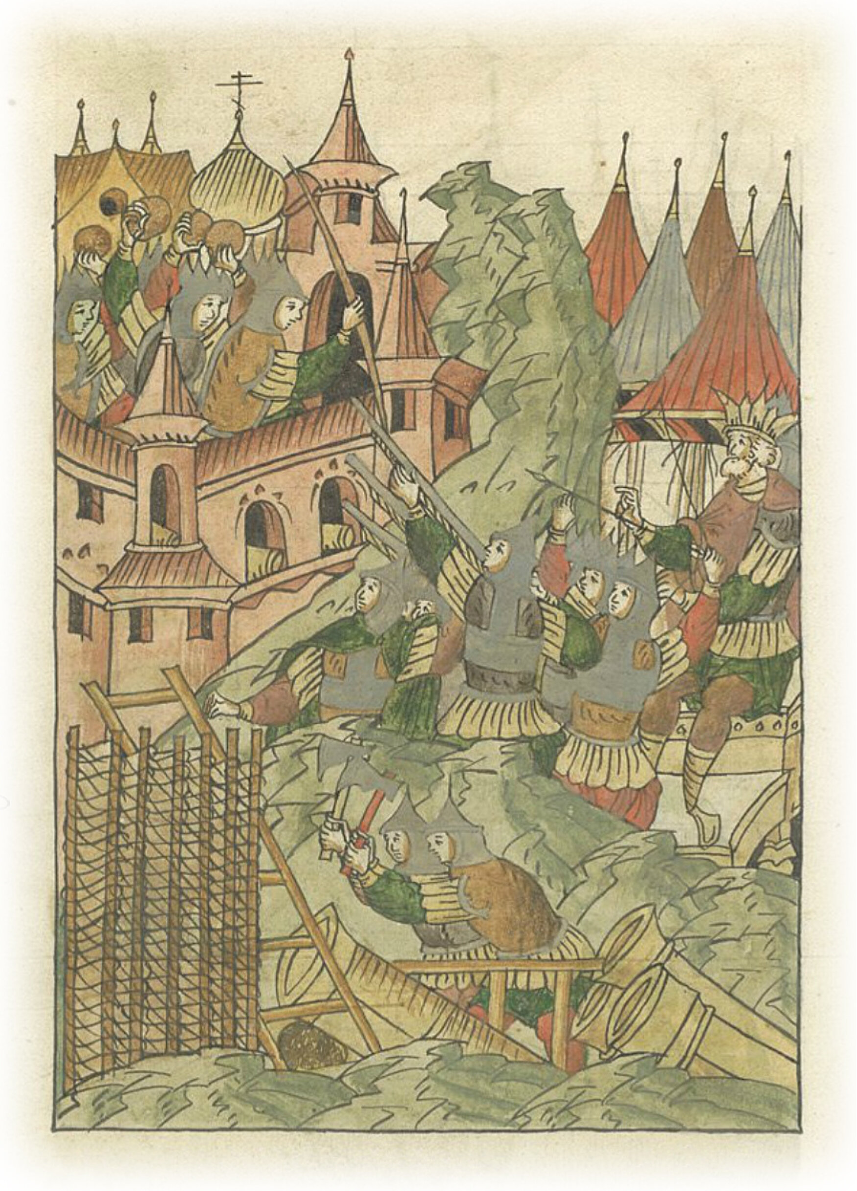 а воинам повелел биться с горожанами каждый день, не давая горожанам отдыха. В 21 день мая месяца из-за грехов наших