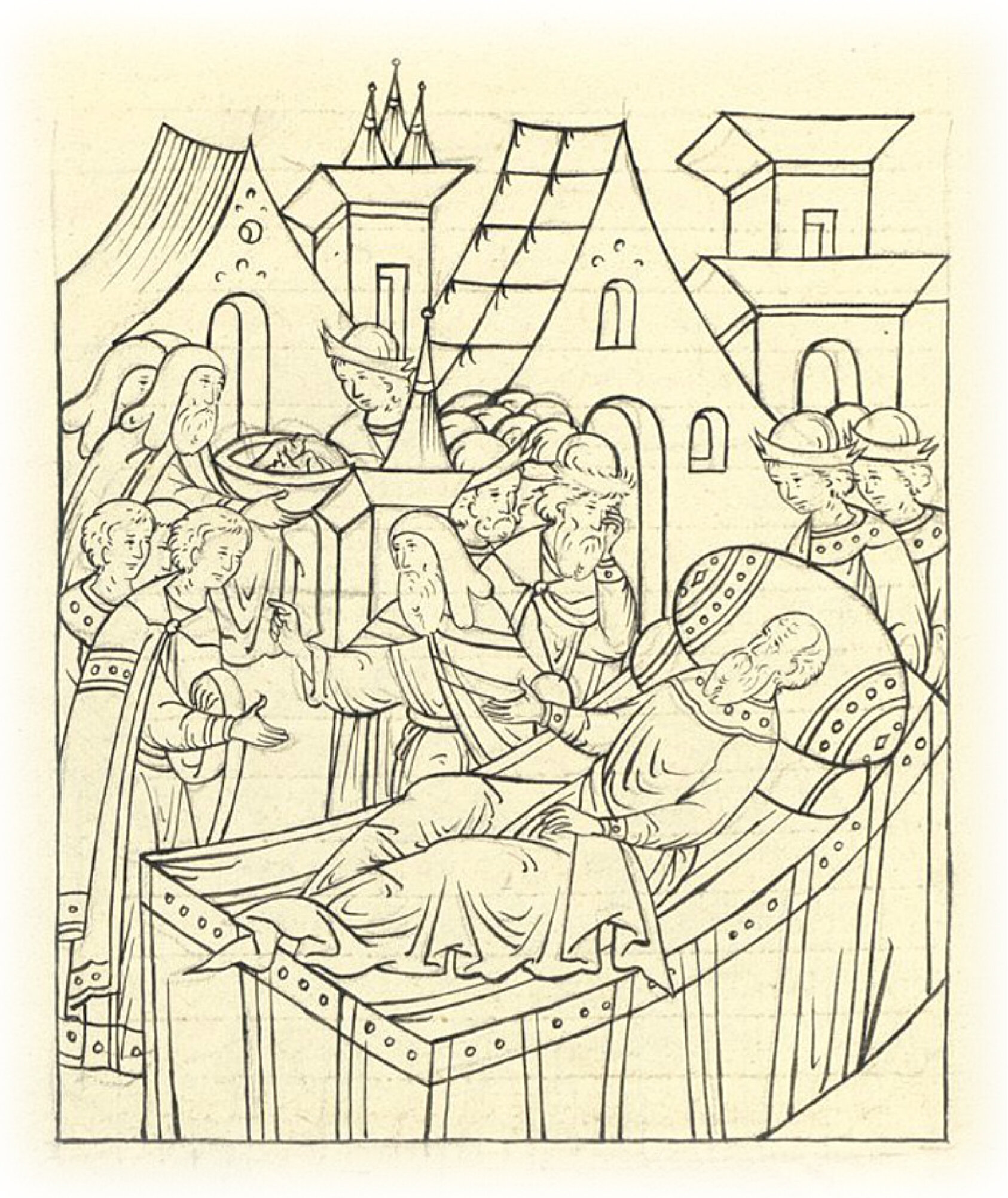 Митрополит всея Руси Даниил велит принести чернеческое платье и готовит всё для пострижения великого князя Василия Ивановича.
