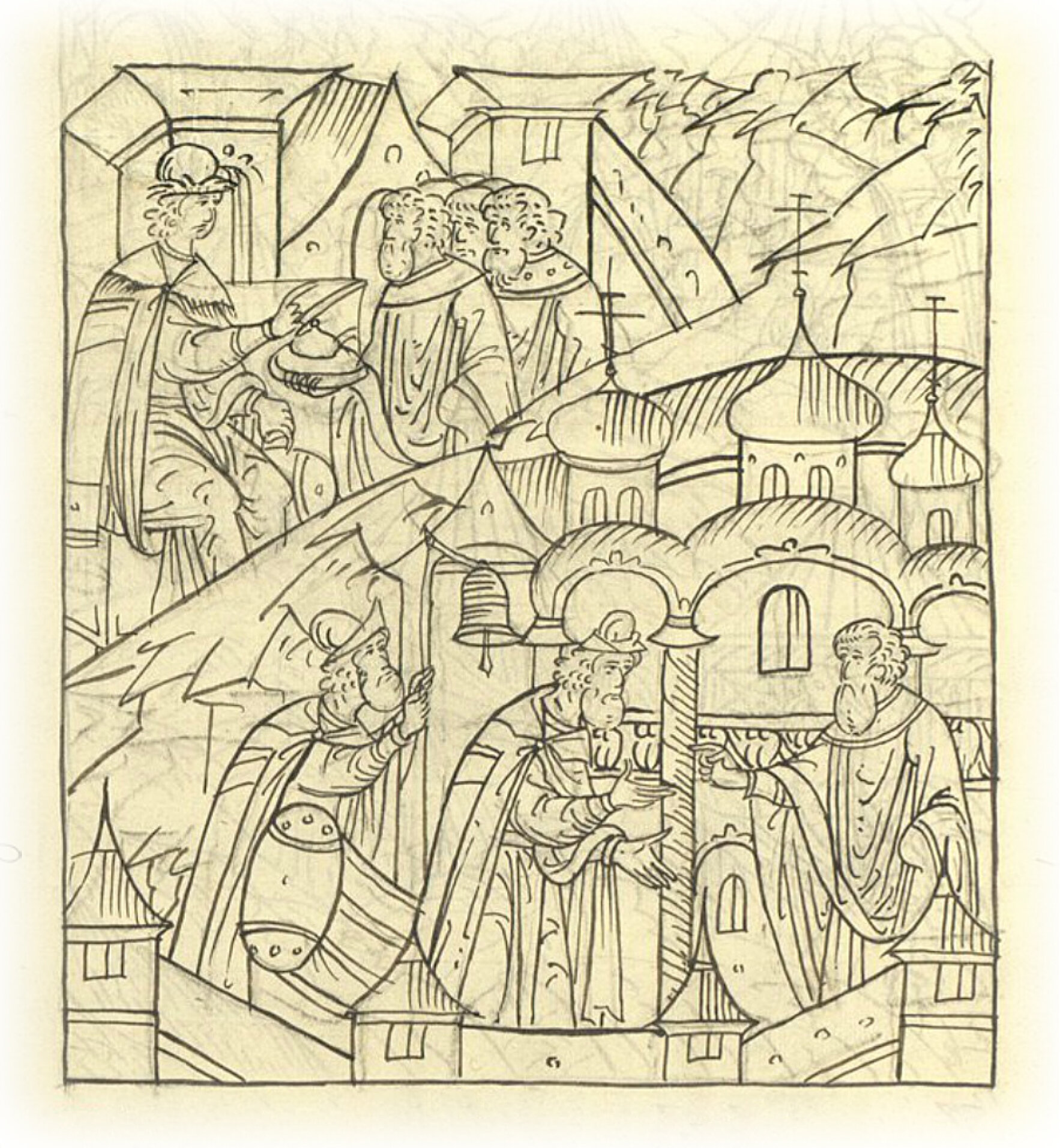 Ругодивские посадники Яким и Захар приезжают в Москву. Воеводы царя Ивана Васильевича Алексей Адашев и Иван Михайлов сообщают им, что государь пожалует их, если сдадут его воеводам помимо Ругодива Вышгород.