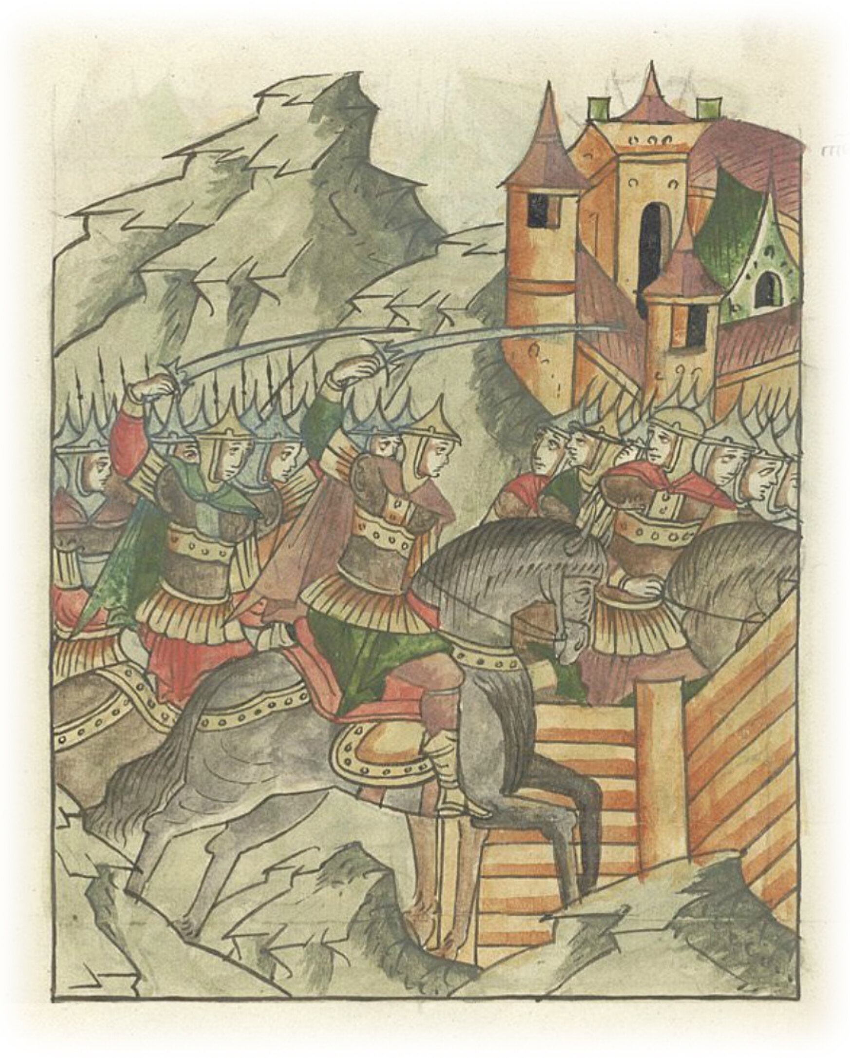 И тут обступили их татары, и была сеча очень злая, и прогнали их к Надолбам.