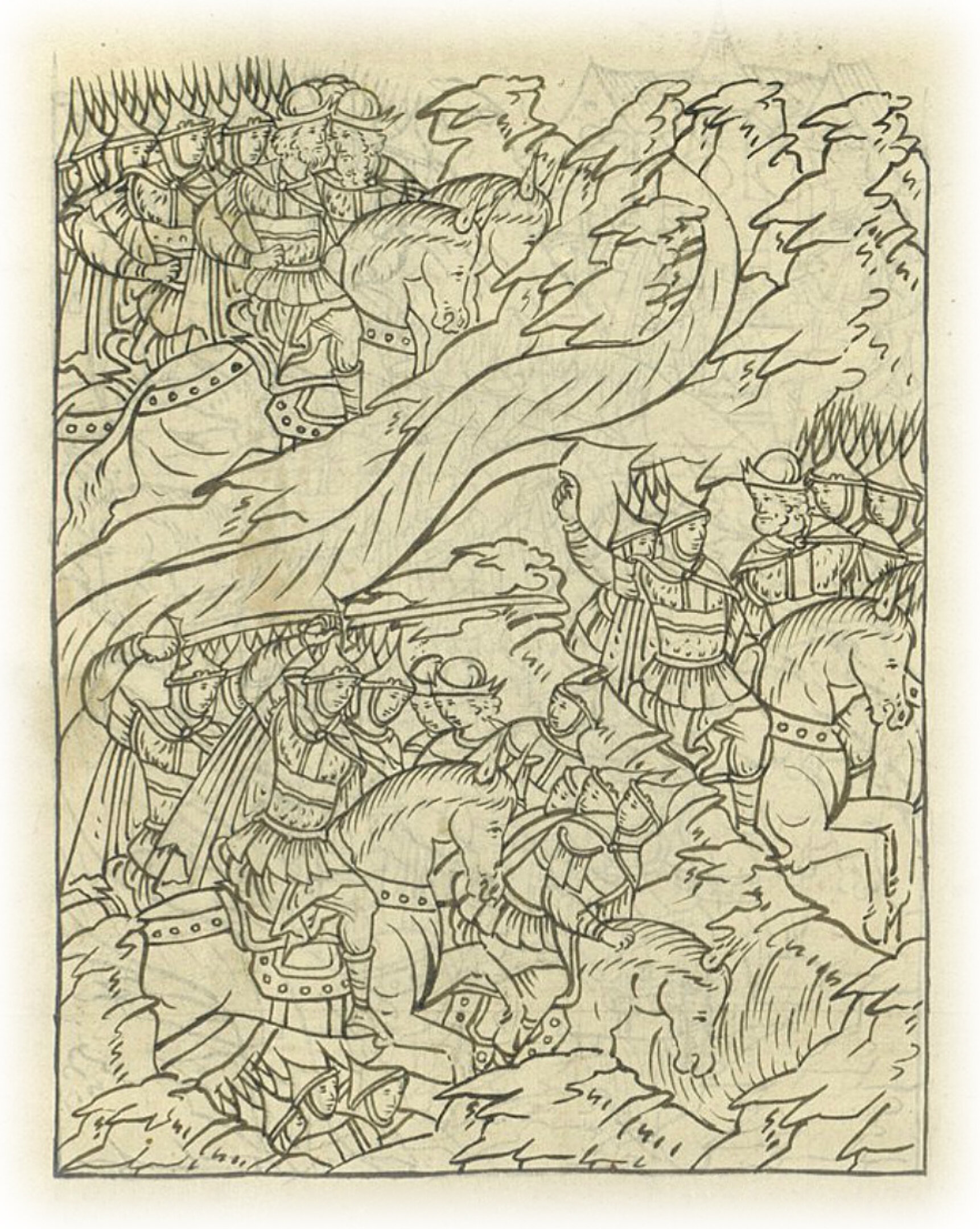 И воеводы великого князя по государеву велению (многие из многих мест ходили: с Рязани – князь Семен Иванович Микулинский Пунков, от За- райска – князь Петр Пронской, с Тулы – князь Петр Куракин, с Сенкина перевоза – князь Михайло Глинский, из Одоева – князь Михайло да князь Александр Воротынский, из Серпухова – князь Юрий Темкин, и иные многие воеводы) за ними ходили до Дона. И дошли до татарских сторожей на Куликовом поле, и многих татарских сторожей великого князя сторожа побили, а одних взяли, а иные поубегали. И весть татарам от тех беглецов пришла.