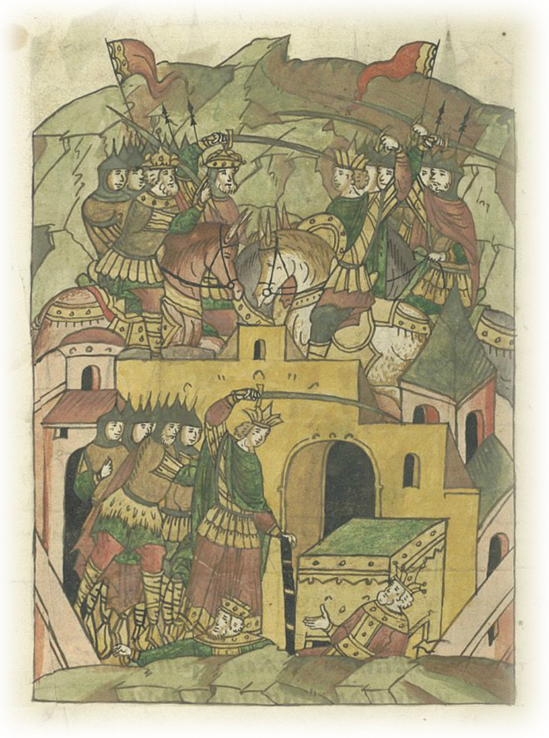 Воеводы царя Ивана Васильевича, разделившись, идут в погоню за царем Емгурчеем.