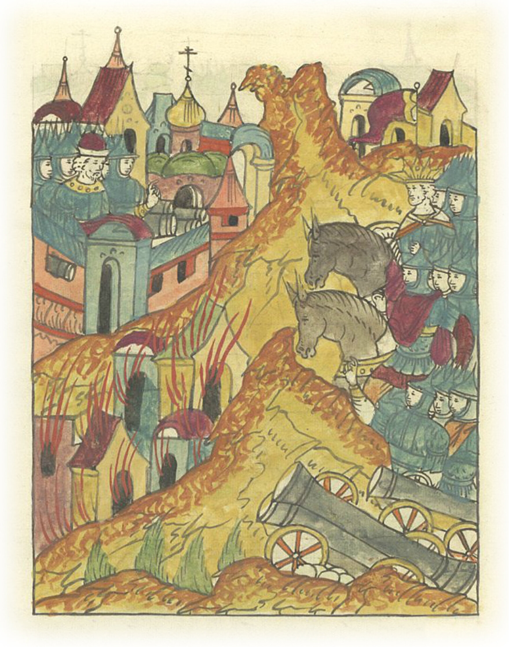 А стоял царь у города Рязани с пушками четыре дня и посады пожег, а городу, благодаря Божьему заступничеству и пречистой Богородицы, никакой беды сделать не смог.