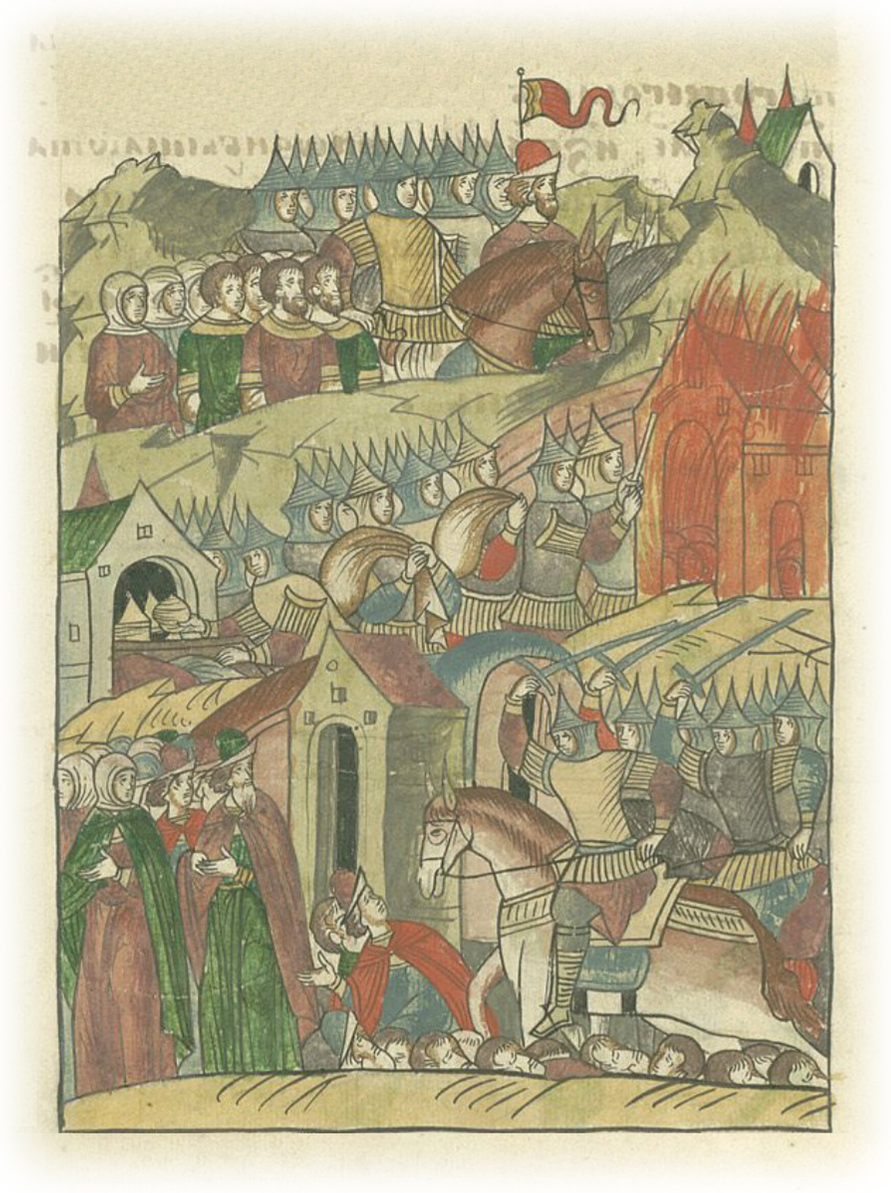 Рать великого князя Дмитрия Ивановича разоряет Рязанскую землю.