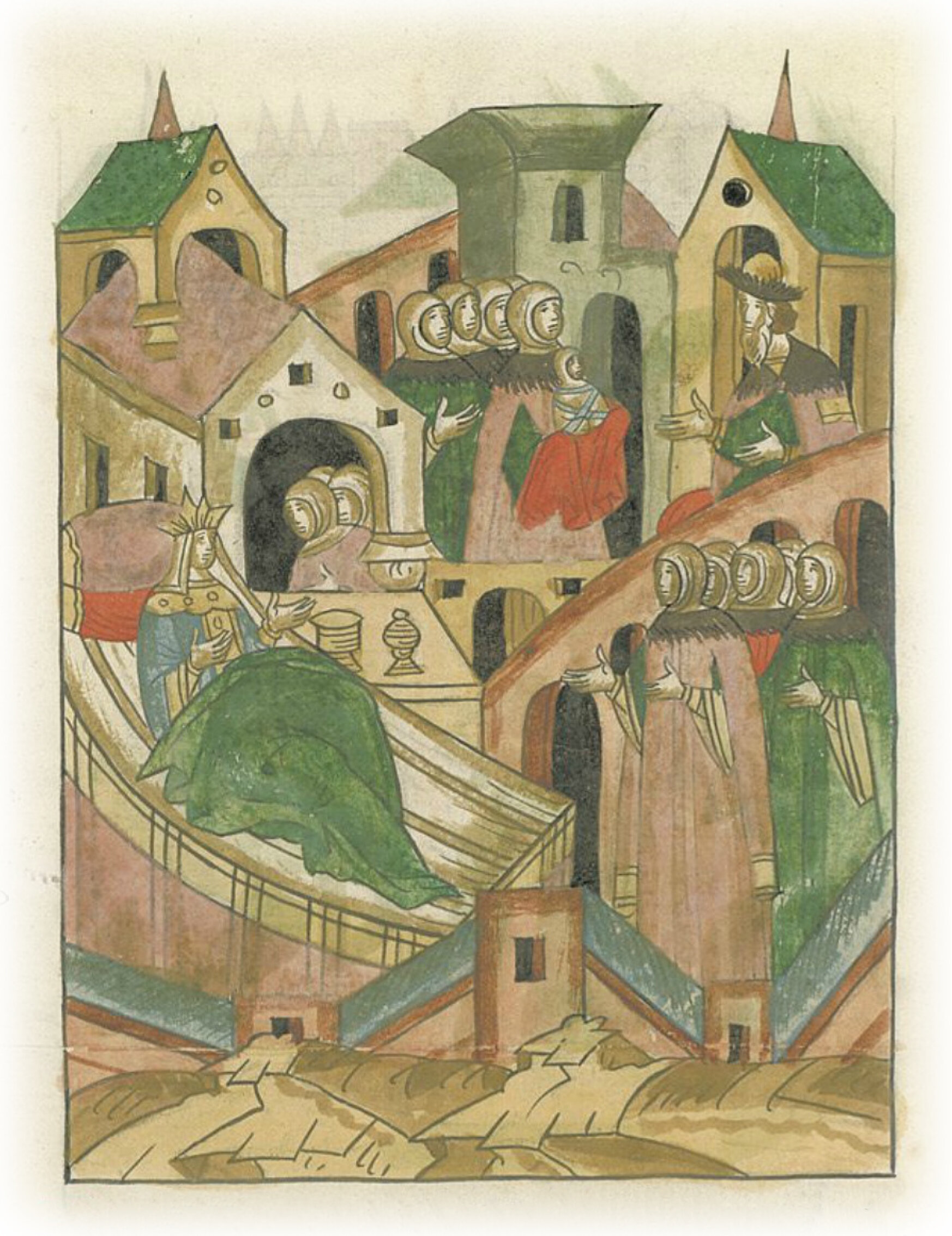 Ругодивские посадники Яким и Захар приезжают в Москву. Воеводы царя Ивана Васильевича Алексей Адашев и Иван Михайлов сообщают им, что государь пожалует их, если сдадут его воеводам помимо Ругодива Вышгород.