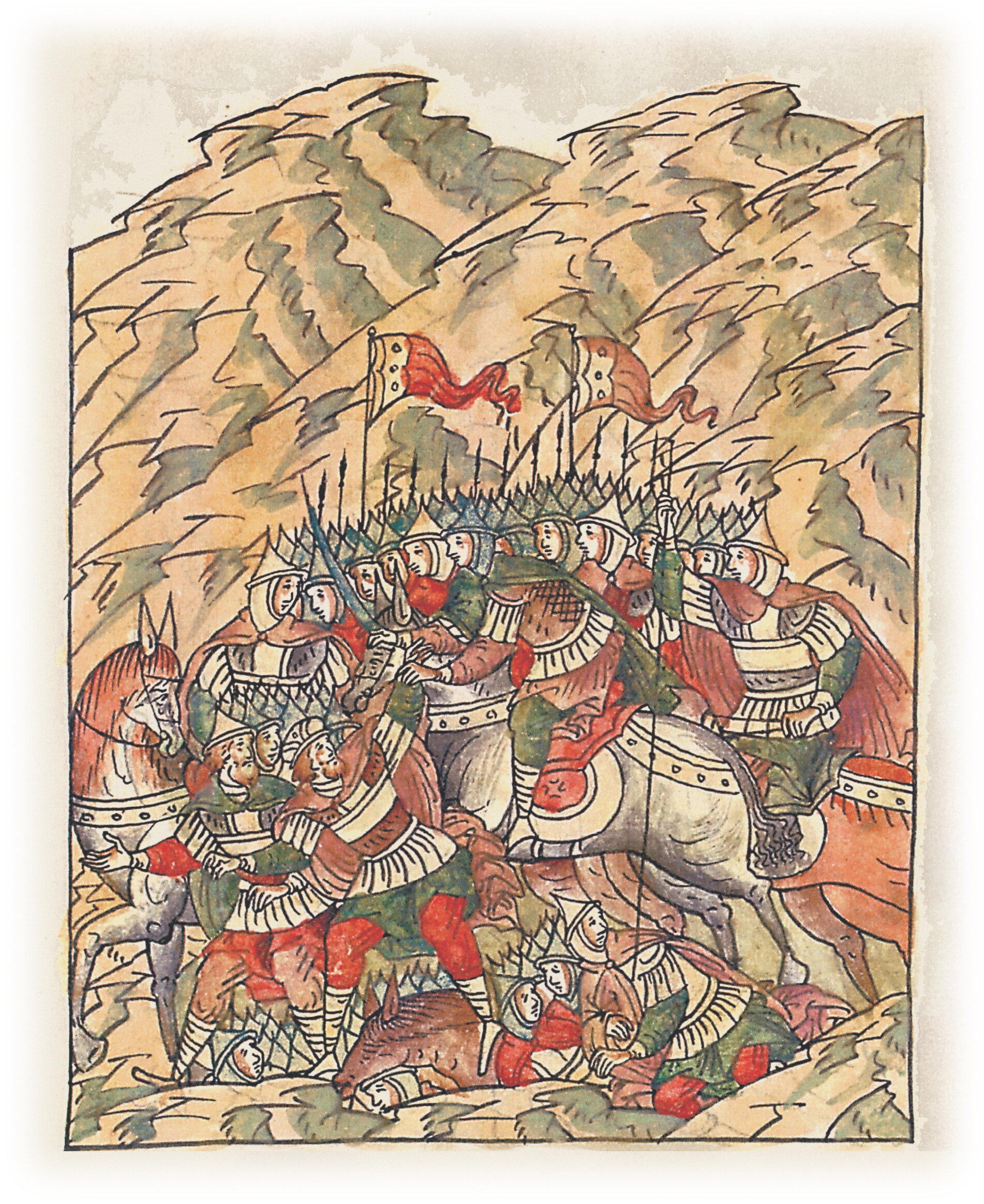 Воеводы царя Ивана Васильевича, разделившись, идут в погоню за царем Емгурчеем.