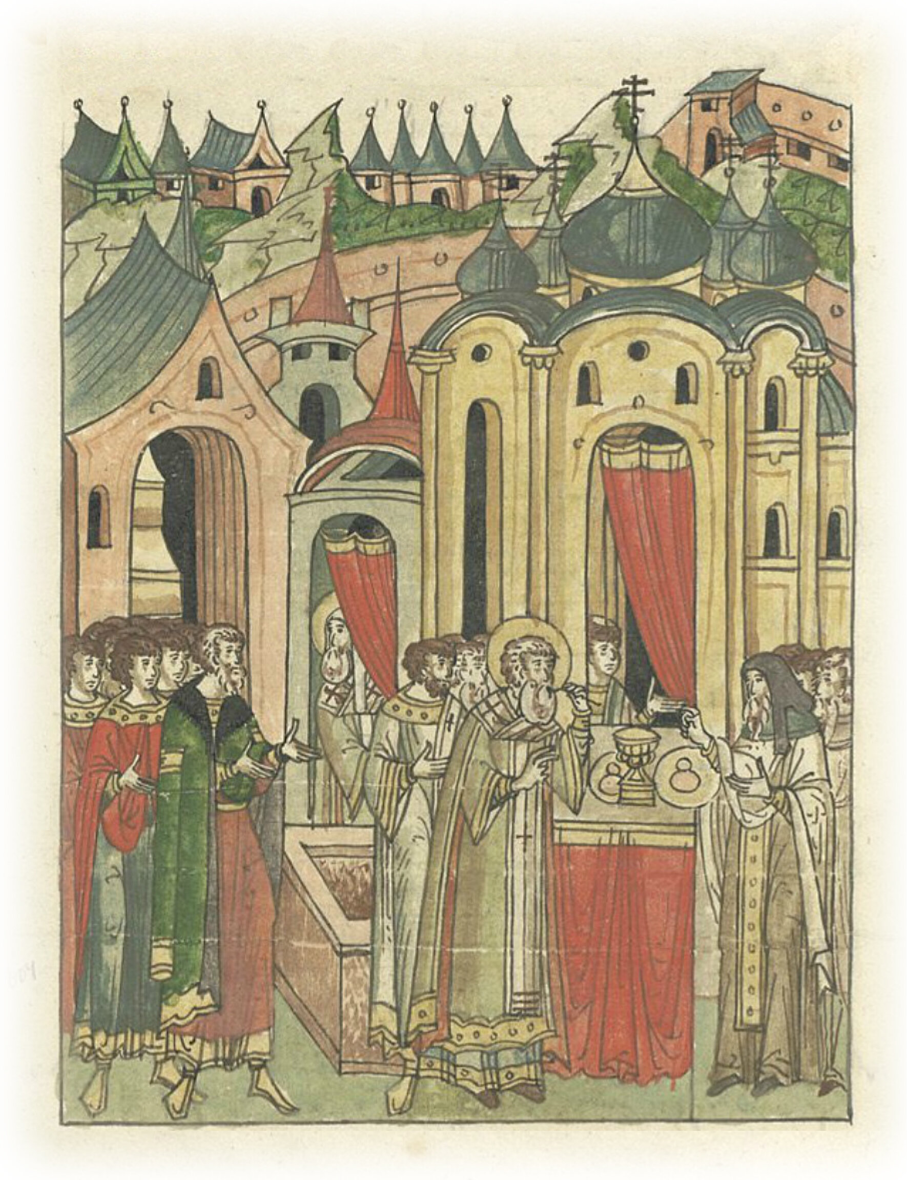 Однажды днем он вошел в церковь и стал совершать божественную службу. Помолившись о православных царях и князьях, и о своем духовном сыне, которого возлюбил, (я говорю о благочестивом князе Иване), и за все множество благочестивых христиан всей Русской земли, помолившись также и об умерших, стал причащаться святых тайн.