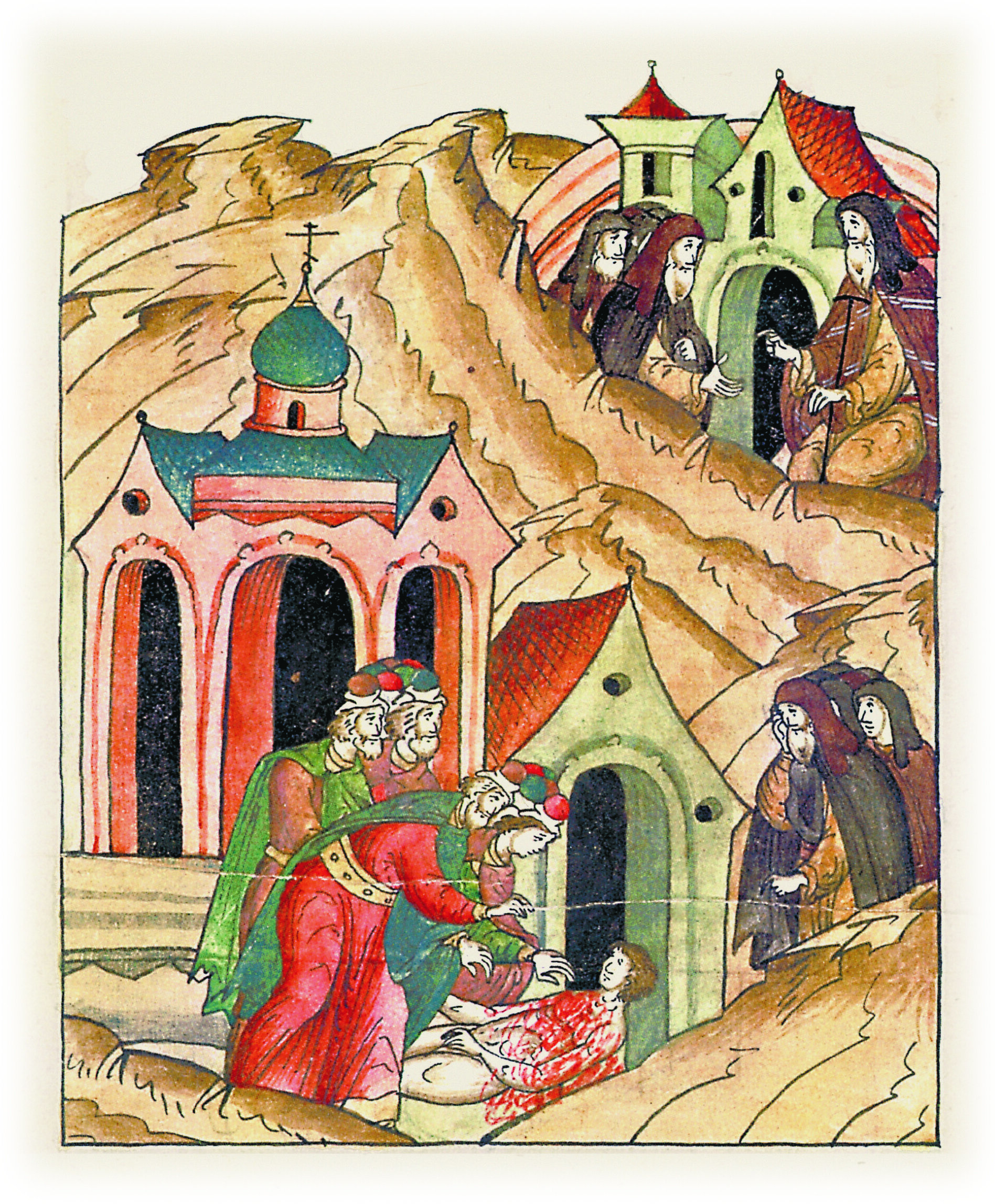 И пришли от великого князя Киевского Изяслава Мстиславича тысяцкий Лазарь и от брата его, князя Владимира Мстиславича, тысяцкий Рогуйло на торжище, и взяли князя-инока Игоря Олеговича, лежащего мертвым, нагого, брошенного на торжище; и положили его в церкви святого Михаила, в Новгородскую божницу. И утром в субботу послал Климент, митрополит Киевский и всея Руси, игумена Ананию монастыря святого Феодора; и, придя, игумен увидел князя инока Игоря Олеговича, лежащего нагим и облитым кровью; и, заплакав, сказал: «О, лютая человеческая суета! Кому уподобился и за что пострадал? У, люто нам, в суетном этом веке живущим! Где любовь друг к другу? Где милость? Воистину все исчезло и погибло!»
