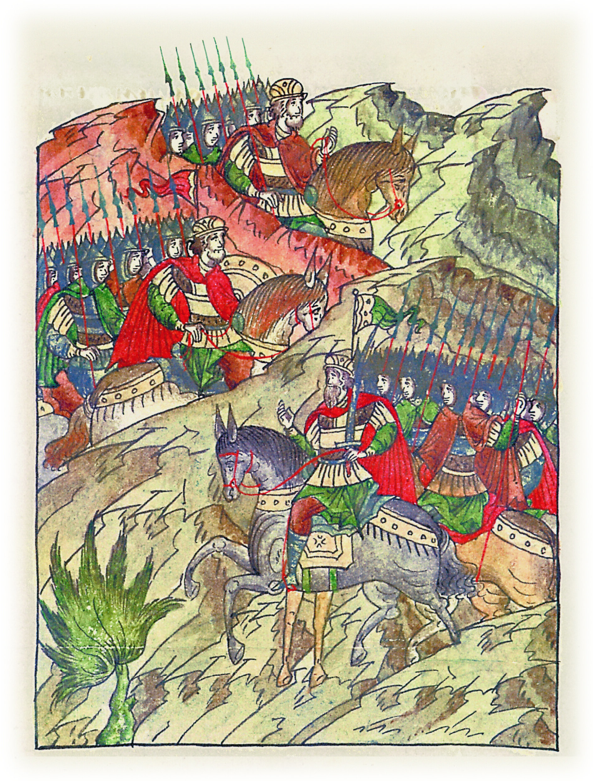 Воеводы царя Ивана Васильевича, разделившись, идут в погоню за царем Емгурчеем.