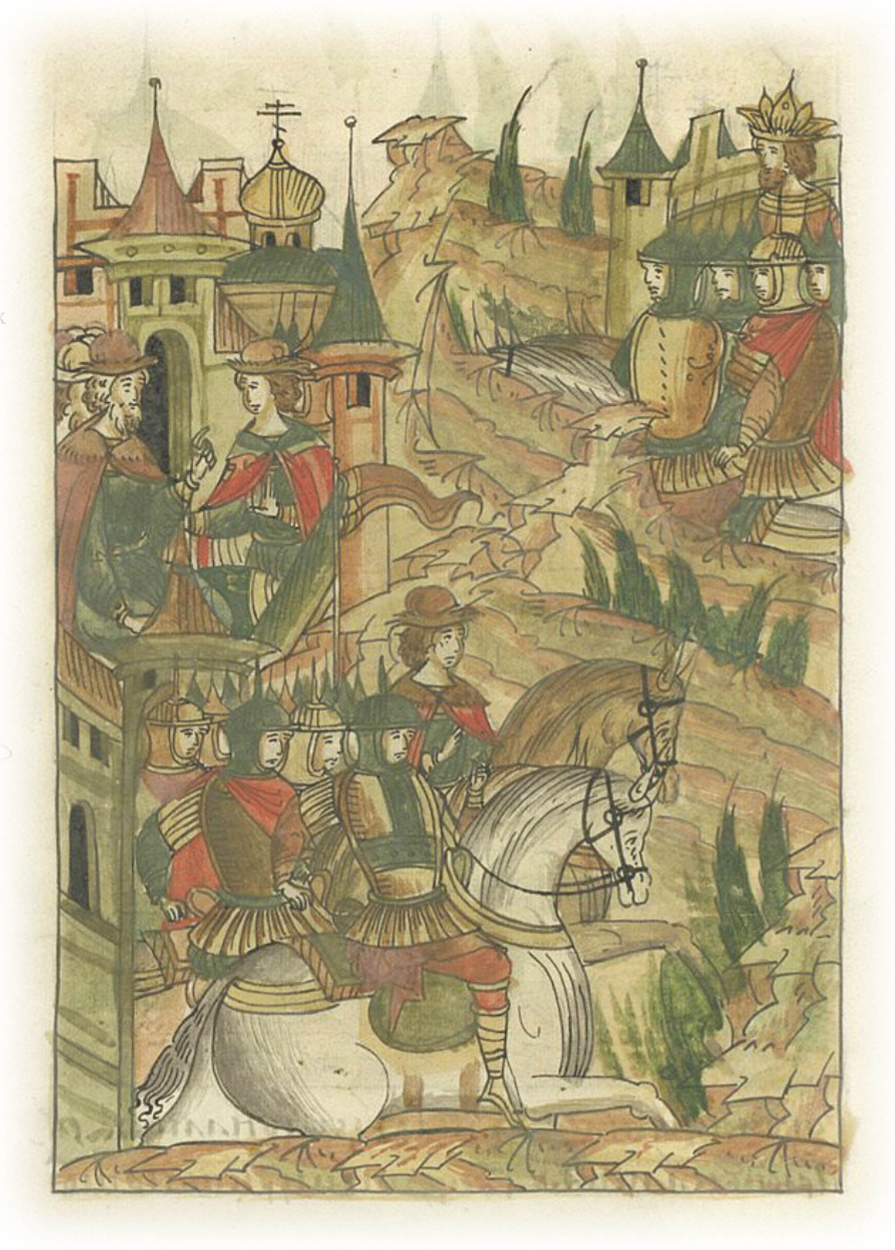 Языки говорят воеводам царя Ивана Васильевича, что магистр окопался большим рвом вокруг города Рындола, бьет из пушек и пищалей и приступает к Рындолу.