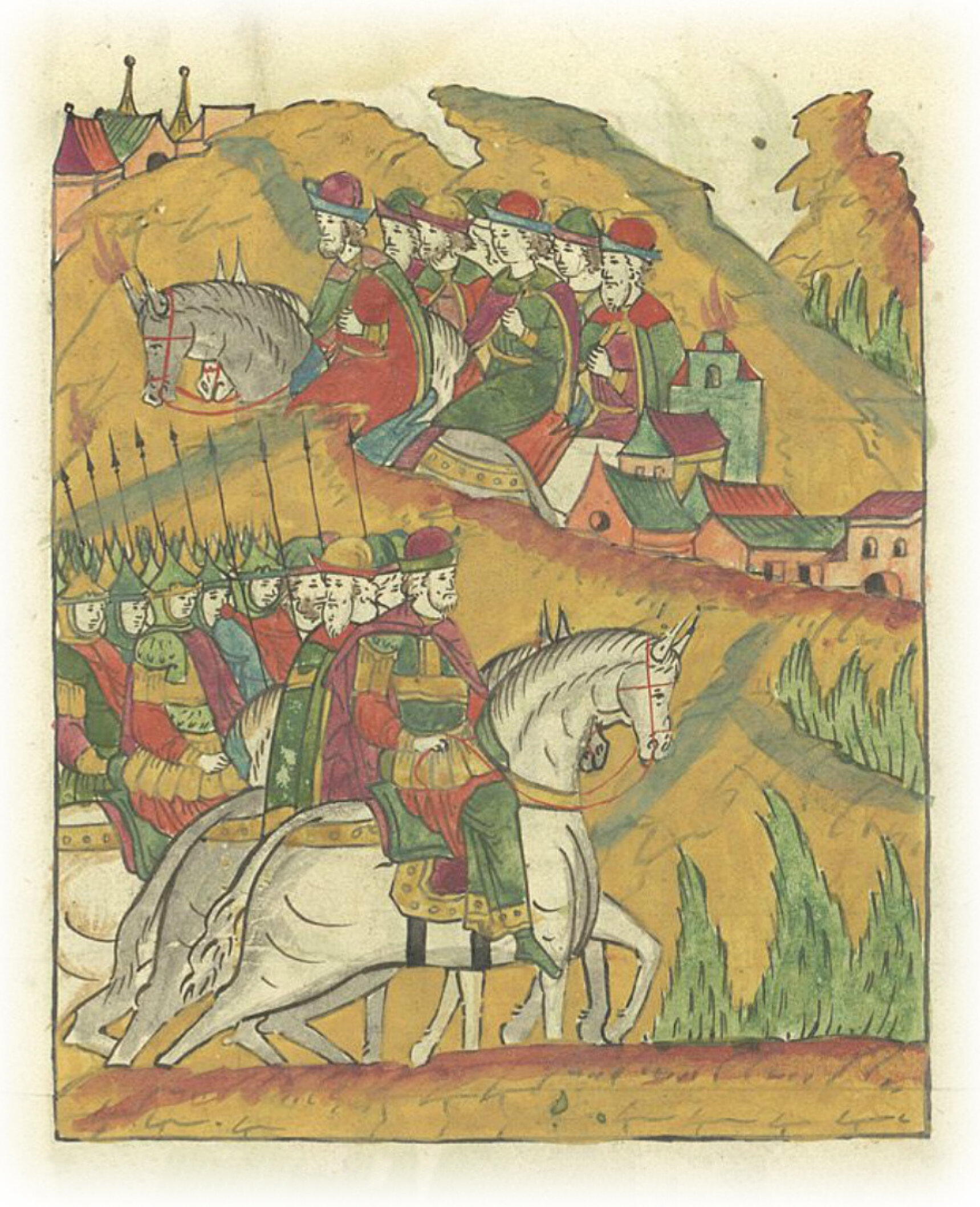 И князь Иван Овчина, собравшись со многими людьми, пошел за князем Андреем; а князь Андрей от Заячского Яма повернул влево, к Русе Старой.
