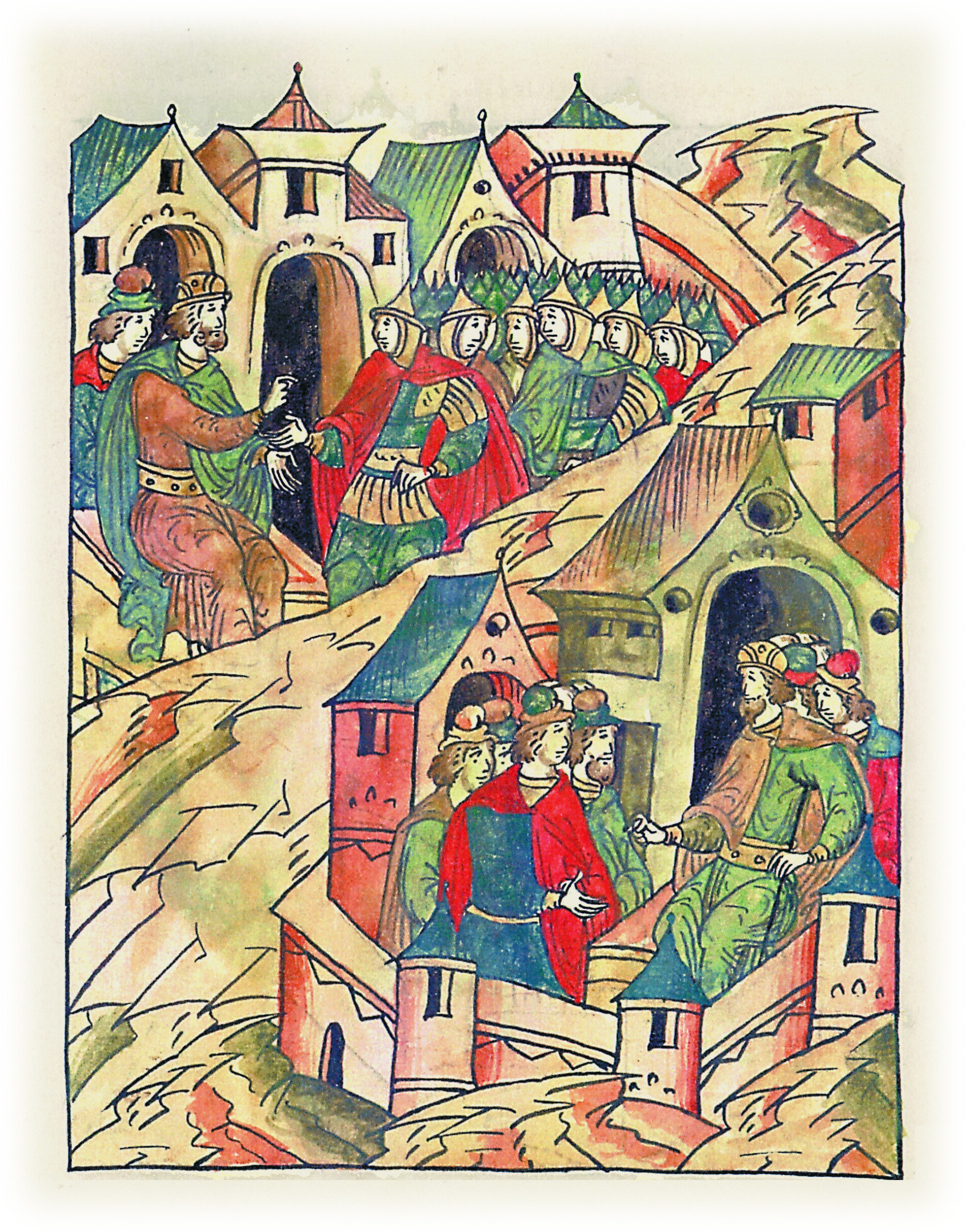 Ругодивские посадники Яким и Захар приезжают в Москву. Воеводы царя Ивана Васильевича Алексей Адашев и Иван Михайлов сообщают им, что государь пожалует их, если сдадут его воеводам помимо Ругодива Вышгород.