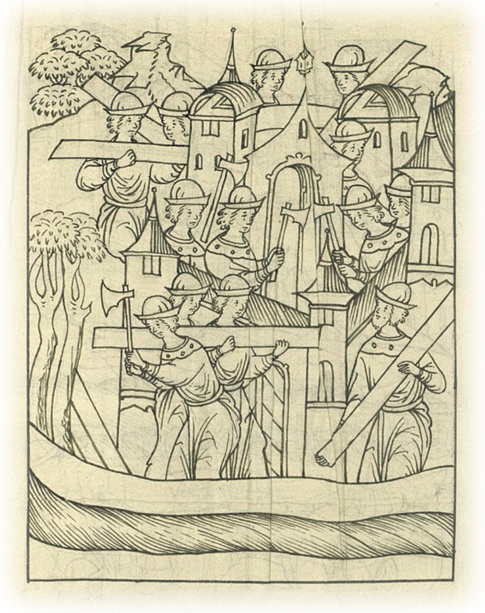 Строительство деревянного города в Мещере на реке Мокше.