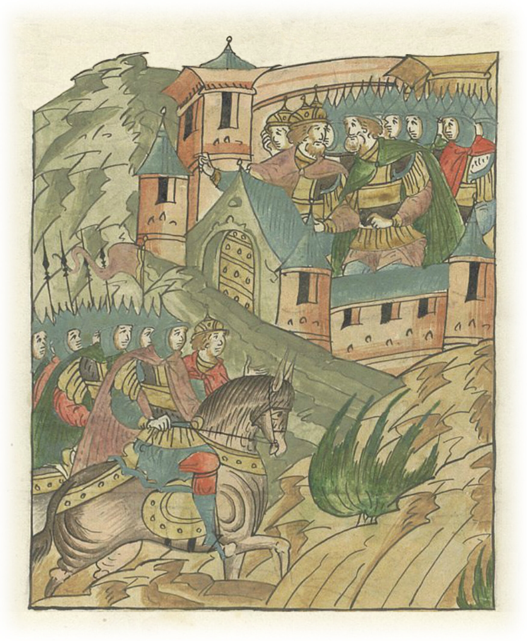Ругодивские посадники Яким и Захар приезжают в Москву. Воеводы царя Ивана Васильевича Алексей Адашев и Иван Михайлов сообщают им, что государь пожалует их, если сдадут его воеводам помимо Ругодива Вышгород.