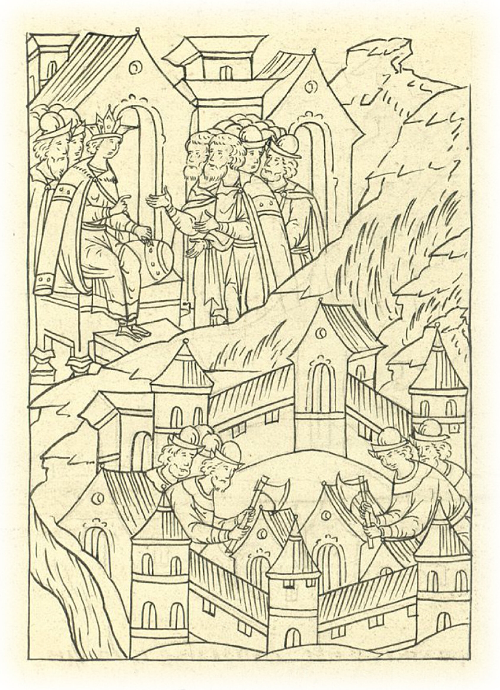 Языки говорят воеводам царя Ивана Васильевича, что магистр окопался большим рвом вокруг города Рындола, бьет из пушек и пищалей и приступает к Рындолу.