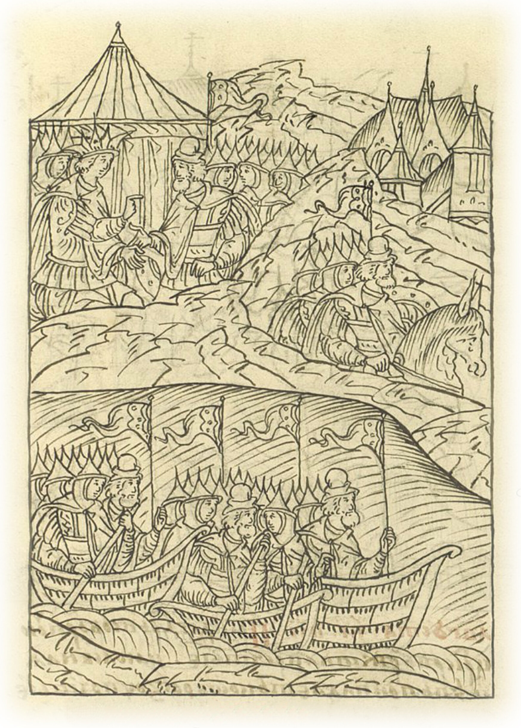 Языки говорят воеводам царя Ивана Васильевича, что магистр окопался большим рвом вокруг города Рындола, бьет из пушек и пищалей и приступает к Рындолу.