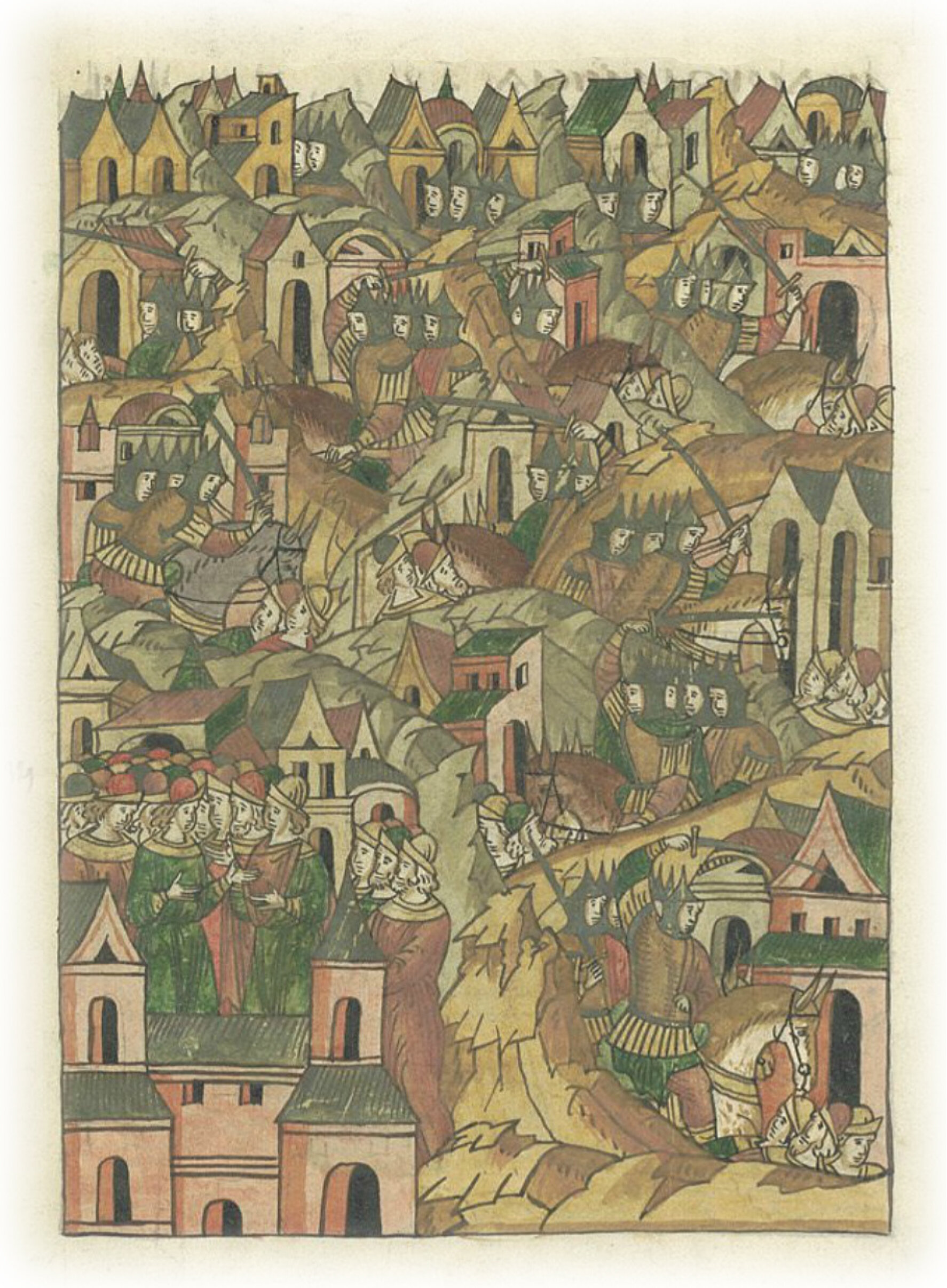 И Суздаль, и Юрьев, и Переславль, Дмитров, Москву, Коломну, Можайск, Волок, Углич-Поле - всех городов взяли 14 и всю землю пустой сотворили. А в Твери не были, ибо заступился за нее Бог. Собралось же тогда в Тверь отовсюду беженцев много, и все совещались между собою, (как) с татарами биться.