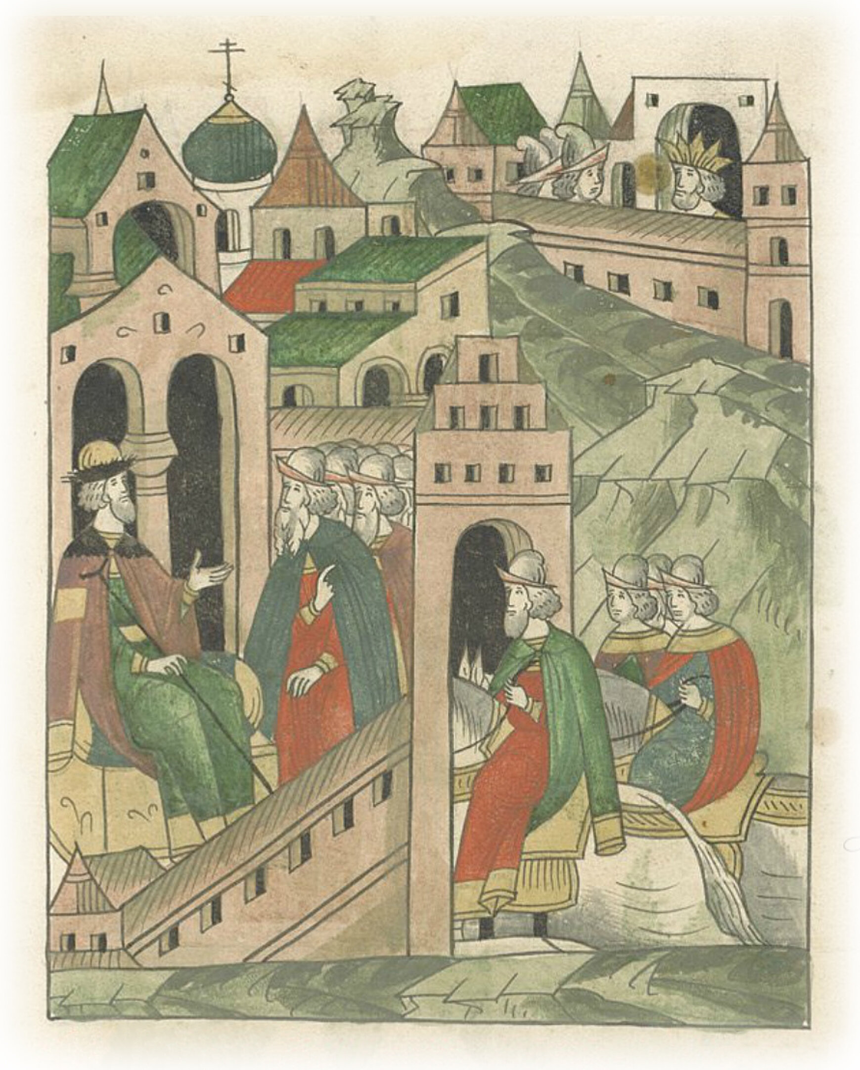 Ругодивские посадники Яким и Захар приезжают в Москву. Воеводы царя Ивана Васильевича Алексей Адашев и Иван Михайлов сообщают им, что государь пожалует их, если сдадут его воеводам помимо Ругодива Вышгород.