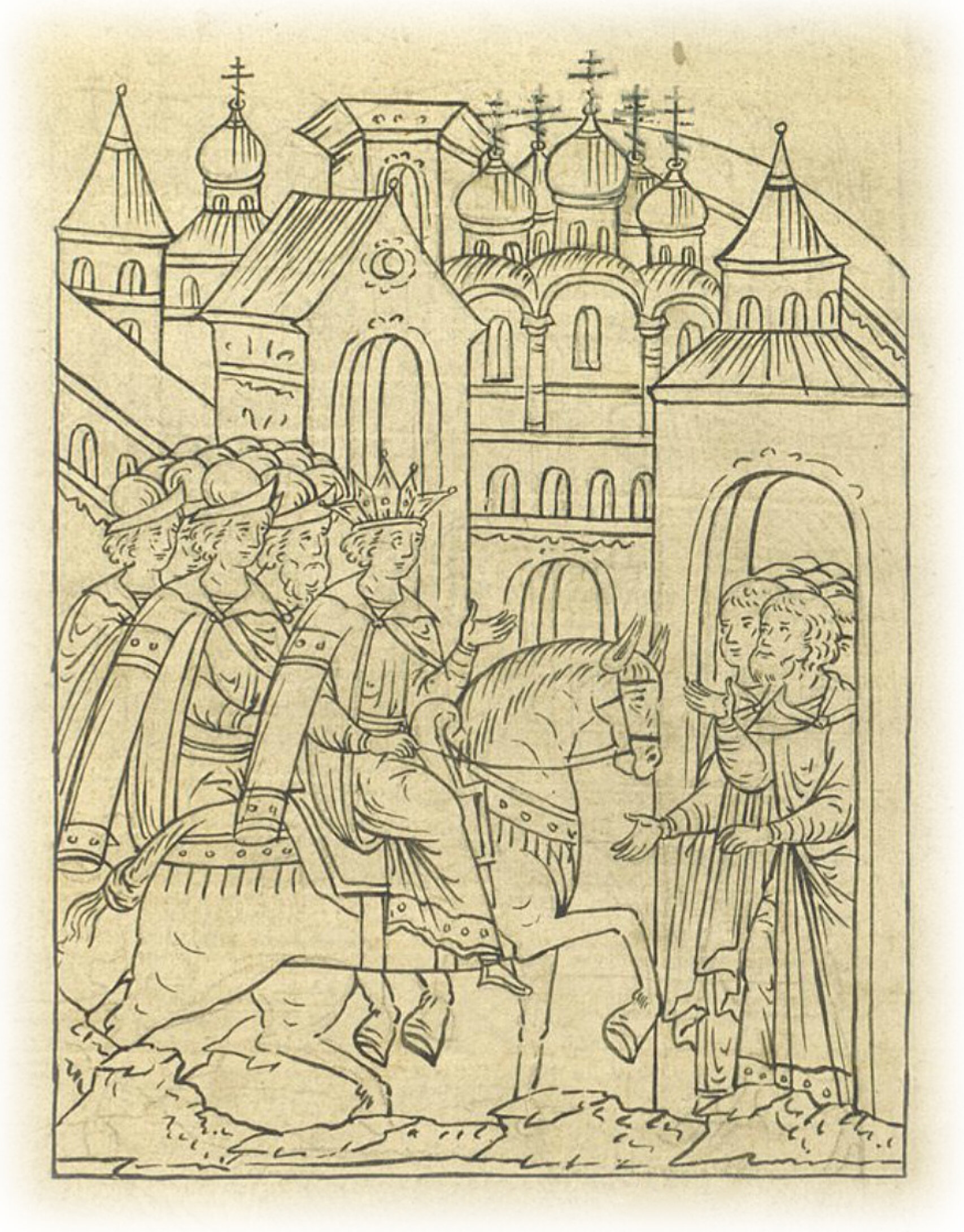 Ругодивские посадники Яким и Захар приезжают в Москву. Воеводы царя Ивана Васильевича Алексей Адашев и Иван Михайлов сообщают им, что государь пожалует их, если сдадут его воеводам помимо Ругодива Вышгород.