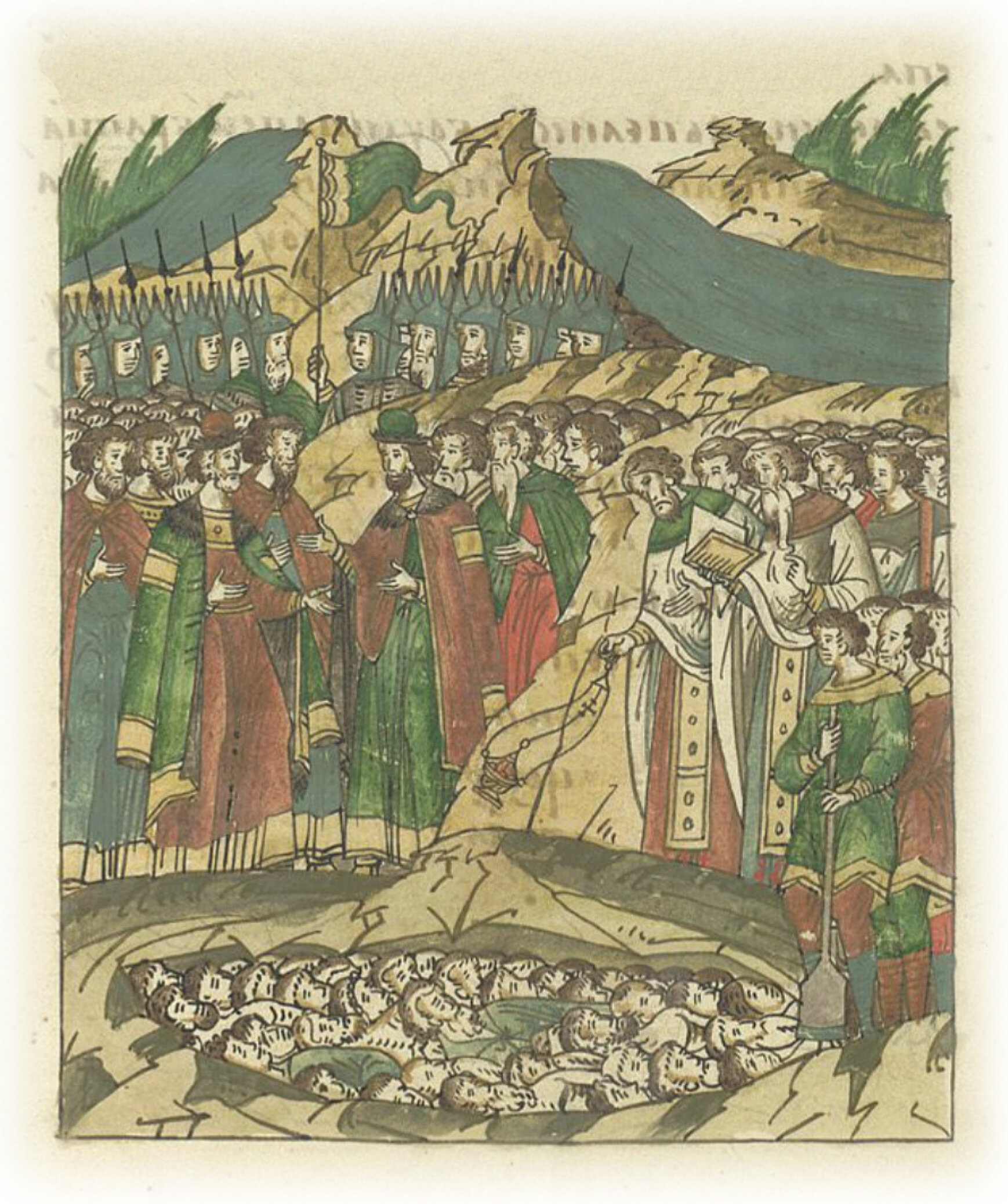 Надгробные песнопения и погребение русских воинов, убитых татарами на Куликовом поле.